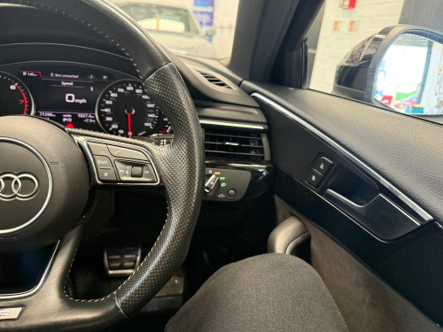 Introducing the stunning Audi A4 Black Edition TFSI Semi-Auto 4dr. This sleek and sophisticated vehicle is the epitome of luxury and style. Finished in a sleek black colour, it exudes elegance and class.With its powerful 1.4 TFSI engine, this Audi A4 delivers a smooth and exhilarating driving experience. The semi-automatic transmission adds a touch of convenience, making every journey a pleasure.Step inside the Audi A4 and you'll be greeted by a spacious and luxurious interior, complete with premium materials and cutting-edge technology. From the comfortable seats to the advanced infotainment system, every detail has been carefully crafted to enhance your driving experience.Whether you're cruising through the city streets or embarking on a long road trip, the Audi A4 Black Edition TFSI Semi-Auto 4dr is the perfect companion. Don't miss your chance to own this exceptional vehicle. Visit our showroom today and experience the luxury of Audi for yourself. re pressure warning light, windscreen with acoustic glazing, voice control, two usb charging ports, towbar preparation, tool kit and car jack, sun visors - with vanity mirror, sport suspension, split-folding rear seat bench in 3 parts - 40-20-40 with rear centre armrest, space saver spare wheel, seat belt monitoring, s line front and rear bumpers and side skirts, s line badges on front wings, remote central locking, rear grille - black grained, bluetooth interface, electric boot lid release, esc - electronic stabilisation control inc abs - asr and edl, driver information system - 7in colour display, door mirrors - electrically adjustable and heated with built-in led indicators, door handles - body coloured, deluxe 3-zone electronic climate control, dab digital radio, cruise control system with freewheeling capability and speed limiter, cloth headlining in black, chrome-plated trims for exhaust system, cd drive, electric windows - front and rear, black styling package, auto-dimming rear-view mirror, audi sound system, audi smartphone interface, audi drive select, audi connect safety and service - e-call, audi connect - 3 month trial, anti-theft alarm, anti theft locking wheel bolts, 6-airbag system, 4-way electric lumbar support, led headlights with led rear lights and dynamic rear indicators, rear diffuser in twilight grey matt, privacy glass and front acoustic glazing, pre-sense city, pop-up bonnet for pedestrian protection, pedals and footrest - stainless steel, parking system plus, multi collision brake assist, manual height adjustment for front seats, mmi navigation - sd card based, light and rain sensor, led interior light package, 19in alloy wheels - 5-arm rotor matt titanium look - diamond cut, keyless go, inlays - piano finish - black, illuminated door sill trims with s logo, isofix child seat mounting and top tether, high gloss package, heated front seats, gear lever knob in black perforated leather, front centre armrest, flat bottomed 3-spoke leather high multi-function steering wheel, first aid kit and warning triangle, electromechanical power steering