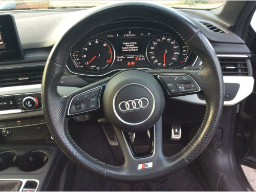 This 2018 Audi A4 TFSI S line presents an exceptional ownership proposition with its remarkably low mileage of just 38,268 miles, a testament to its careful use over its two owner history. Equipped with a 1.4 litre petrol engine and meeting Euro 6 emissions standards, this S line model offers a refined driving experience. Its sophisticated design is enhanced by LED headlights with dynamic rear indicators, ensuring excellent visibility. Inside, you'll find comfort and convenience with Deluxe 3-zone electronic climate control and heated front seats. Parking is made effortless thanks to the Parking System Plus, featuring front and rear sensors, while the Bluetooth interface allows for seamless connectivity on the go.This Audi A4 TFSI S line stands out with its impressive fuel economy, achieving an excellent 52 miles per gallon, which indicates lower running costs compared to many similar vehicles. Furthermore, its low insurance group and low CO2 emissions highlight its efficiency and affordability, making it an attractive choice for a wide range of drivers. in alloy wheels - 5-twin-spoke star design, 4-way electric lumbar support, 6-airbag system, anti theft locking wheel bolts, anti-theft alarm, audi connect - 3 month trial, audi connect safety and service - e-call, audi drive select, audi smartphone interface, audi sound system, auto-dimming rear-view mirror, bluetooth interface, body coloured door mirrors, cd drive, chrome-plated trims for exhaust system, cloth headlining in black, cruise control with speed limiter, dab digital radio, deluxe 3-zone electronic climate control, door handles - body coloured, door mirrors - electrically adjustable and heated with built-in led indicators, driver information system - 7in colour display, esc - electronic stabilisation control inc abs - asr and edl, electric boot lid release, electric windows - front and rear, electromechanical power steering, first aid kit and warning triangle, front centre armrest, gear lever knob in black perforated leather, heated front seats, high gloss package, high multifunction s line 3-spoke leather trimmed sport steering wheel with grips in perforated leather, isofix child seat mounting and top tether, illuminated door sill trims with s logo, inlays - matt brushed aluminium, keyless go, led headlights with led rear lights and dynamic rear indicators, led interior light package, light and rain sensor, mmi navigation - sd card based, manual height adjustment for front seats, multi collision brake assist, parking system plus, pedals and footrest - stainless steel, pop-up bonnet for pedestrian protection, pre-sense city, radiator grille - twilight grey matt with inlays in chrome, rear diffuser in twilight grey matt, rear grille - black grained, remote central locking, s line badges on front wings, s line front and rear bumpers and side skirts, seat belt monitoring, side air inlet grille in titan black matt with chrome inlays in unique s line design, space saver spare wheel, split-folding rear seat bench in 3 parts - 40-20-40 with rear centre armrest, sport suspension, sun visors - with vanity mirror, tool kit and car jack, towbar preparation, two usb charging ports, tyre pressure warning light, voice control, windscreen with acoustic glazing