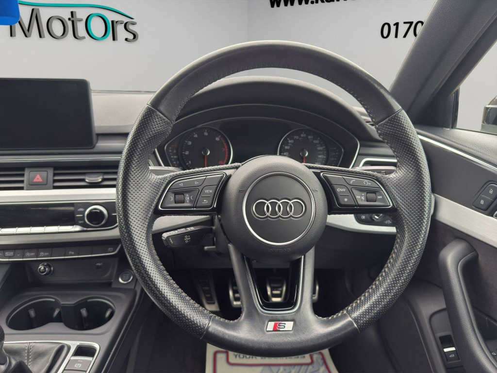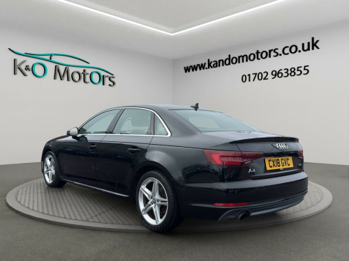 This 2018 Audi A4 S Line, finished in metallic black, is ULEZ compliant and offered for sale in Southend, Essex. It benefits from fantastic service history, some great optional extras such as cruise control, satnav, bluetooth, DAB radio etc!. The car has been fully prepared and is ready for its next owner today.K&O Motors, your trusted independent car dealer in Southend-on-Sea, Essex, specialising in quality used cars at competitive prices. All vehicles are hand-selected for condition, value, and performance and are available for immediate viewing. We are a family run business with 8 staff members (7 are family!) and offer a much more friendly environment to buy your next car than some of the bigger supermarket dealers!At K&O Motors in Southend, every vehicle is HPI clear and undergoes a comprehensive 150 point health check for complete peace of mind. We’re proud to be ranked in the top 5% of AutoTrader dealers for five consecutive years, earning the “Highly Rated for Customer Service” award every year thanks to our commitment to customer satisfaction.Ask a team member how to secure this vehicle today with a fully refundable deposit scheme from as little as £250.With over 300 verified 5-star reviews and a 99%+ customer satisfaction rate, you can buy with confidence. We offer competitive part exchange, flexible finance options for all credit backgrounds (including poor credit), and nationwide delivery. For added reassurance, nationwide warranty cover is available for up to 3 years.We’re conveniently located in Southend, Essex, with free collection from Southend Central or Prittlewell train stations. People have also flown into London Southend airport to visit us! Viewings is advised by appointment.Opening hours: Mon–Fri 9:15am–5.30pm | Sat 9:15am–1pm. Out-of-hours appointments available on request.K&O Motors – Quality Used Cars in Southend, Essex. Contact us today.. 18in Alloy Wheels - 5-Twin-Spoke Star Design, 4-Way Electric Lumbar Support, 6-Airbag System, Anti Theft Locking Wheel Bolts, Anti-Theft Alarm, Audi Connect - 3 Month Trial, Audi Connect Safety and Service - e-call, Audi Drive Select, Audi Smartphone Interface, Audi Sound System, Auto-Dimming Rear-View Mirror, Bluetooth Interface, Body Coloured Door Mirrors, CD Drive, Chrome-Plated Trims for Exhaust System, Cloth Headlining in Black, Cruise Control with Speed Limiter, DAB Digital Radio, Deluxe 3-Zone Electronic Climate Control, Door Handles - Body Coloured, Door Mirrors - Electrically Adjustable and Heated with Built-in LED Indicators, Driver Information System - 7in Colour Display, ESC - Electronic Stabilisation Control inc ABS - ASR and EDL, Electric Boot Lid Release, Electric Windows - Front and Rear, Electromechanical Power Steering, First Aid Kit and Warning Triangle, Front Centre Armrest, Gear Lever Knob in Black Perforated Leather, Heated Front Seats, High Gloss Package, High Multifunction S Line 3-Spoke Leather Trimmed Sport Steering Wheel with Grips in Perforated Leather, ISOFIX Child Seat Mounting and Top Tether, Illuminated Door Sill Trims with S Logo, Inlays - Matt Brushed Aluminium, Keyless Go, LED Headlights with LED Rear Lights and Dynamic Rear Indicators, LED Interior Light Package, Light and Rain Sensor, MMI Navigation - SD Card Based, Manual Height Adjustment for Front Seats, Multi Collision Brake Assist, Parking System Plus, Pedals and Footrest - Stainless Steel, Pop-Up Bonnet for Pedestrian Protection, Pre-Sense City, Radiator Grille - Twilight Grey Matt with Inlays in Chrome, Rear Diffuser in Twilight Grey Matt, Rear Grille - Black Grained, Remote Central Locking, S Line Badges on Front Wings, S line Front and Rear Bumpers and Side Skirts, Seat Belt Monitoring, Side Air Inlet Grille in Titan Black Matt with Chrome Inlays in Unique S Line Design, Space Saver Spare Wheel, Split-Folding Rear Seat Bench in 3 Parts - 40-20-40 with Rear Centre Armrest, Sport Suspension, Sun Visors - with Vanity Mirror, Tool Kit and Car Jack, Towbar Preparation, Two USB Charging Ports, Tyre Pressure Warning Light, Voice Control, Windscreen with Acoustic Glazing.