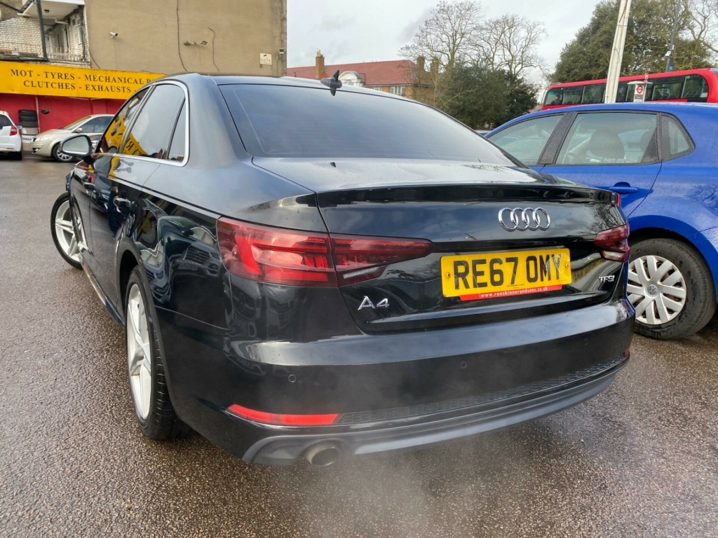 Cars Yard is delighted to present this stunning Audi A4 1.4 TFSI S line S Tronic Euro 6 ((((((***FREE 6 MONTHS WARRANTY + 12 MONTHS FREE AA BREAKDOWN COVER ****))))) USED BY 2 FORMER KEEPER, SERVICE HISTORY, GREAT CONDITION IN AND OUT ***Excellent condition*** 5 Day Driveaway Insurance at Additional cost available for cars up to 10 years old STS, FINANCE AVAILABLE, CALL US ON 02045392878. AA Approved Dealer, FCA registered Dealer. 18in Alloy Wheels - 5-Twin-Spoke Star Design, 4-Way Electric Lumbar Support, 6-Airbag System, Anti Theft Locking Wheel Bolts, Anti-Theft Alarm, Audi Connect - 3 Month Trial, Audi Connect Safety and Service - e-call, Audi Drive Select, Audi Smartphone Interface, Audi Sound System, Auto-Dimming Rear-View Mirror, Bluetooth Interface, Body Coloured Door Mirrors, CD Drive, Chrome-Plated Trims for Exhaust System, Cloth Headlining in Black, Cruise Control System with Freewheeling Capability and Speed Limiter, DAB Digital Radio, Deluxe 3-Zone Electronic Climate Control, Door Handles - Body Coloured, Door Mirrors - Electrically Adjustable and Heated with Built-in LED Indicators, Driver Information System - 7in Colour Display, ESC - Electronic Stabilisation Control inc ABS - ASR and EDL, Electric Boot Lid Release, Electric Windows - Front and Rear, Electromechanical Power Steering, First Aid Kit and Warning Triangle, Front Centre Armrest, Gear Lever Knob in Black Perforated Leather, Heated Front Seats, High Gloss Package, High Multifunction S Line 3-Spoke Leather Trimmed Sport Steering Wheel with Grips in Perforated Leather, ISOFIX Child Seat Mounting and Top Tether, Illuminated Door Sill Trims with S Logo, Inlays - Matt Brushed Aluminium, Keyless Go, LED Headlights with LED Rear Lights and Dynamic Rear Indicators, LED Interior Light Package, Light and Rain Sensor, MMI Navigation - SD Card Based, Manual Height Adjustment for Front Seats, Multi Collision Brake Assist, Parking System Plus, Pedals and Footrest - Stainless Steel, Pop-Up Bonnet for Pedestrian Protection, Pre-Sense City, Radiator Grille - Twilight Grey Matt with Inlays in Chrome, Rear Diffuser in Twilight Grey Matt, Rear Grille - Black Grained, Remote Central Locking, S Line Badges on Front Wings, S line Front and Rear Bumpers and Side Skirts, Seat Belt Monitoring, Side Air Inlet Grille in Titan Black Matt with Chrome Inlays in Unique S Line Design, Space Saver Spare Wheel, Split-Folding Rear Seat Bench in 3 Parts - 40-20-40 with Rear Centre Armrest, Sport Suspension, Sun Visors - with Vanity Mirror, Tool Kit and Car Jack, Towbar Preparation, Two USB Charging Ports, Tyre Pressure Warning Light, Voice Control, Windscreen with Acoustic Glazing, Parking Assistance Pack, Rear Side Airbags.