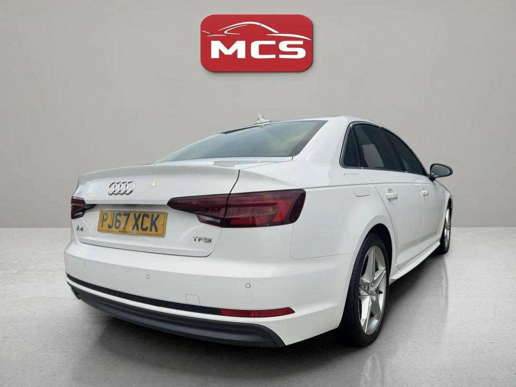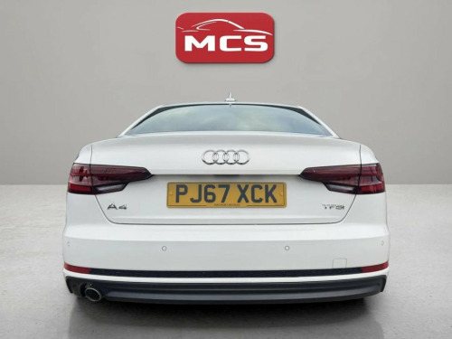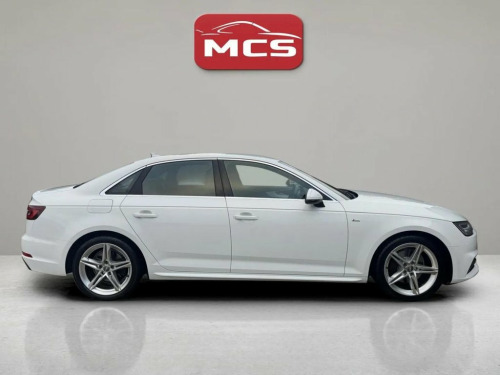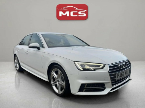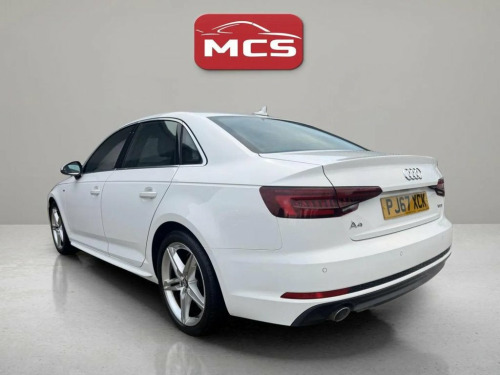 Boasting exceptionally low mileage for its age, this 2017 Audi A4 TFSI S line presents a remarkable opportunity. With only two previous owners and a full service history, including a recent service at 47,000 miles on 9th December 2025, this vehicle has been meticulously maintained. It comes with a clear vehicle history check and will be supplied with 12 months MOT for your peace of mind, alongside a 3 month warranty. The Euro 6 compliant 1.4 litre petrol engine ensures efficient performance, complemented by desirable features such as automatic LED headlights with dynamic rear indicators, a Bluetooth interface, and deluxe 3 zone climate control. This Audi A4 TFSI S line stands out with its impressive fuel economy of 52 mpg, making it an economical choice for your daily journeys. Furthermore, its low CO2 emissions and low insurance group highlight its cost effectiveness compared to similar vehicles. Inside, you will appreciate the comfort of heated front seats, adding a touch of luxury to every drive. This combination of efficiency, comfort, and advanced features makes this Audi A4 a truly compelling proposition. 18in Alloy Wheels - 5-Twin-Spoke Star De, 4-Way Electric Lumbar Support, 6-Airbag System, Anti Theft Locking Wheel Bolts, Anti-Theft Alarm, Audi Connect - 3 Month Trial, Audi Connect Safety and Service - e-call, Audi Drive Select, Audi Smartphone Interface, Audi Sound System, Auto-Dimming Rear-View Mirror, Bluetooth Interface, Body Coloured Door Mirrors, CD Drive, Chrome-Plated Trims for Exhaust System, Cloth Headlining in Black, Cruise Control with Speed Limiter, DAB Digital Radio, Deluxe 3-Zone Electronic Climate Control, Door Handles - Body Coloured, Door Mirrors - Electrically Adjustable a, Driver Information System - 7in Colour D, ESC - Electronic Stabilisation Control i, Electric Boot