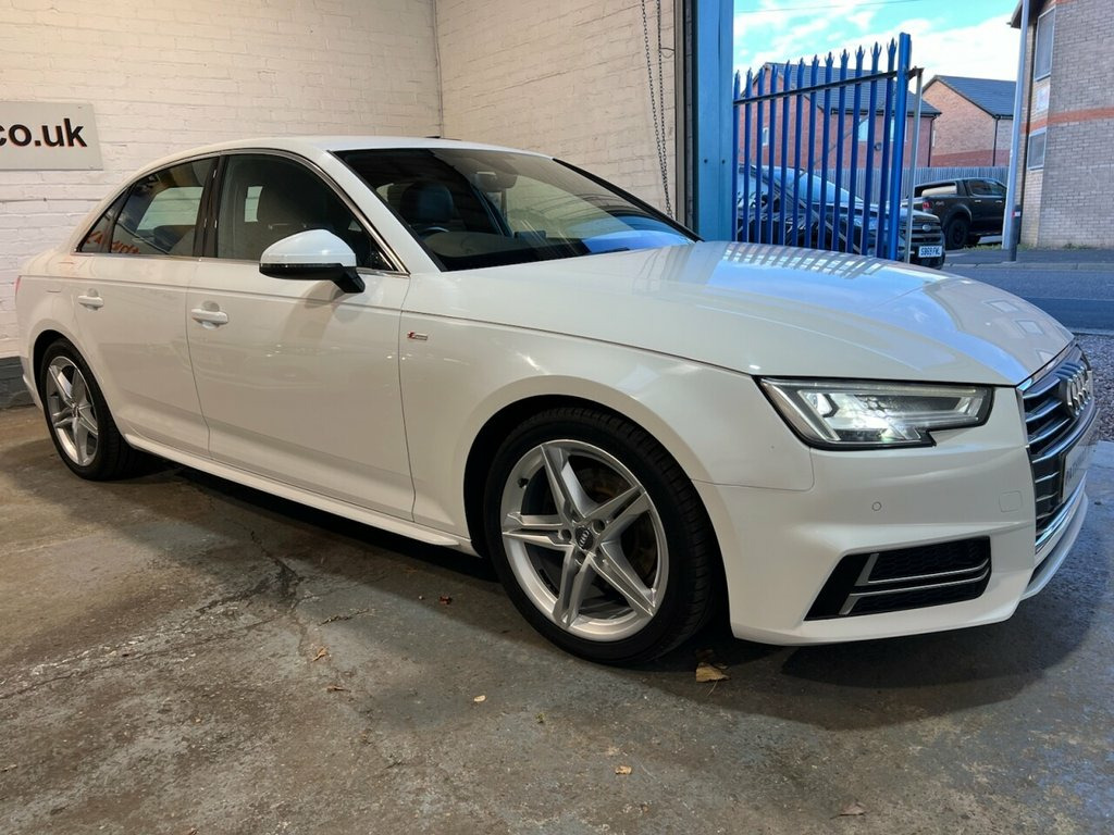 Reg No: YK17ZJP COMPREHENSIVE FINANCE SPECIALISTS, CONTACT US FIRST TO PRE-QUALIFY FOR FINANCE ACCEPTANCE. 2017 (17 PLATE) AUDI A4 1.4 TFSI S LINE SALOON 4D FINISHED IN GLACIER WHITE, 12 MONTH MOT, SERVICE HISTORY, LOADS OF SPEC, 2 X FULL REMOTE KEYS , DAYTIME RUNNING LIGHTS, GREAT LOOKING CAR!! 6Spd Manual Gearbox, 18in Alloy Wheels - 5-Twin-Spoke Star De, 4-Way Electric Lumbar Support, 6-Airbag System, Anti Theft Locking Wheel Bolts, Anti-Theft Alarm, Audi Connect - 3 Month Trial, Audi Connect Safety and Service - e-call, Audi Drive Select, Audi Smartphone Interface, Audi Sound System, Auto-Dimming Rear-View Mirror, Bluetooth Interface, Body Coloured Door Mirrors, CD Drive, Chrome-Plated Trims for Exhaust System, Cloth Headlining in Black, Cruise Control with Speed Limiter, DAB Digital Radio, Deluxe 3-Zone Electronic Climate Control, Door Handles - Body Coloured, Door Mirrors - Electrically Adjustable a, Door Mirrors - Electrically Folding, Driver Information System - 7in Colour D