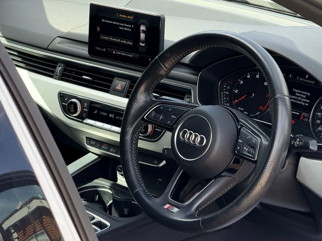 Surrey Specialist Cars are proud to present our lovely Audi A4 S Line TFSI. This amazing car comes with Service History, finished in stunning metallic white with leather seats. The car has a Long MOT until May 2026 so it is ready to go. The 1.4L Petrol engine offers superb economy at over 55 MPG on combined cycle. Features Include Multifunction Steering Wheel, Trip Computer, Satellite Navigation, Heated Seats, Cruise Control, Speed Limiter, Stereo Control, Audi Drive Select, FM/DAB Radio, CD Player, Bluetooth Audio, Apple CarPlay, SD Card, USB Input, AUX Input, Start/Stop System, Parking Sensors, 12V Charging Socket, two Cup Holders, 6 Speed Manual Gearbox, Electronic Hand Brake, 18 Inch Alloy Wheels and two Remote Control Keys to name a few. 18in Alloy Wheels - 5-Twin-Spoke Star De, 4-Way Electric Lumbar Support, 6-Airbag System, Anti Theft Locking Wheel Bolts, Anti-Theft Alarm, Audi Connect - 3 Month Trial, Audi Connect Safety and Service - e-call, Audi Drive Select, Audi Smartphone Interface, Audi Sound System, Auto-Dimming Rear-View Mirror, Bluetooth Interface, Body Coloured Door Mirrors, CD Drive, Chrome-Plated Trims for Exhaust System, Cloth Headlining in Black, Cruise Control with Speed Limiter, DAB Digital Radio, Deluxe 3-Zone Electronic Climate Control, Door Handles - Body Coloured, Door Mirrors - Electrically Adjustable a, Driver Information System - 7in Colour D, ESC - Electronic Stabilisation Control i, Electric Boot