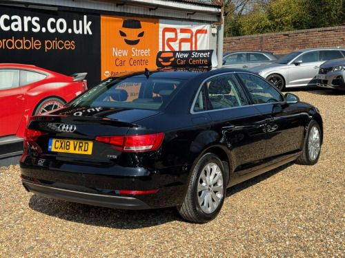 This is an Audi A4 SE, registered in 2018. As a TFSI SE car, it combines practicality with modern features. The vehicle includes a Light and Rain Sensor, which automatically turns on the headlights when needed. Parking is made easier with Parking System Plus, incorporating front and rear parking sensors. Stay connected on the move thanks to the Bluetooth interface. The Deluxe 3-Zone Electronic Climate Control ensures a comfortable environment for all passengers. With a 1.4L petrol engine and Euro 6 emission class, this A4 offers an efficient driving experience. It achieves around 53 miles per gallon, meaning lower fuel costs and fewer trips to the petrol station. The low CO2 emissions also mean youll be contributing less to pollution than similar vehicles. For peace of mind, this vehicle comes with 12 months MOT provided on purchase, ensuring it meets the required safety standards. We are proud to present this Audi A4 1.4 TFSI SE Euro 6 (s/s) 4dr that comes with a service history for added peace of mind. It comes with 2 keys and 2 owner and has just been serviced. 12 months MOT included, You have the option to purchase RAC warranty with the option to extend.At New Street Car Centre we have over 25 years experience as the largest and most trusted used car dealership in Telford. We offer award winning customer service, great prices and excellent preparation standards. Each vehicle undergoes quality control inspections and a complimentary history check for your added peace of mind.we have also included additional specification but please always check the exact specification details with ourselves prior to purchase as models can vary