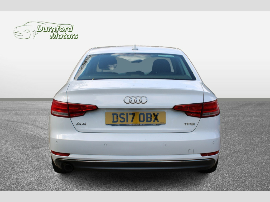 Durnford Motors are excited to offer a 2017 AUDI A4 for sale. This vehicle is a petrol model with a 1395cc engine and is finished in white colour. The A4 is a well-established model in the UK market, known for its reliability and performance. , This AUDI A4 comes with a range of features, including sat nav, providing easy navigation on the road. It also has dab radio, allowing you to tune into your favourite digital stations. Bluetooth connectivity is also included, making it easy to stream music and make hands-free calls. , Additional features of this vehicle include auto lights, which automatically switch on and off, and drive select, which allows you to choose from different driving modes. The cruise control function enables you to maintain a constant speed on long journeys, reducing driver fatigue. , WE ARE AN AA APPROVED DEALER - AA WARRANTY - WARRANTY UPGRADES AVAILABLE 6-12-24-36 MONTHS - FREE AA 12 MONTH BASIC BREAKDOWN COVER - FINANCE AVAILABLE - DRIVEAWAY INSURANCE AVAILABLE - ALL VEHICLES HPI CHECKED - TRADING FOR OVER 35 YEARS - GO AND LOOK AT THE REST, THEN COME BUY THE BEST!