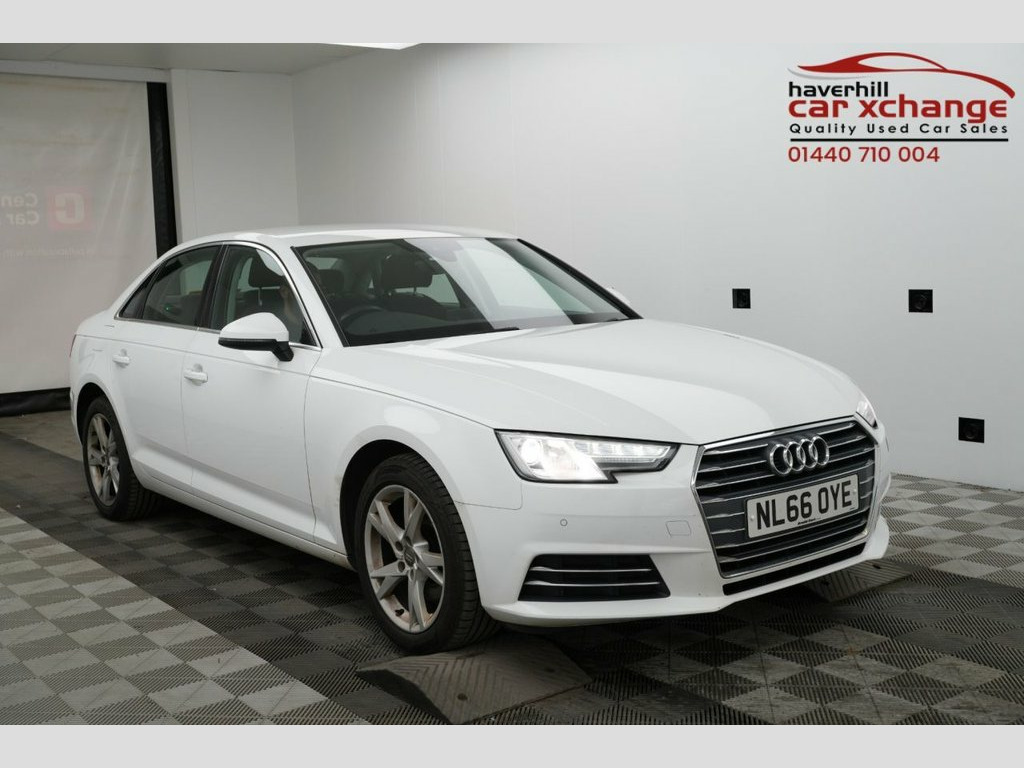 SATELLITE NAVIGATION SYSTEM+DAB DIGITAL RADIO-BLUETOOTH INTERFACE+3-ZONE CLIMATE CONTROL AIR-CONDITIONING+AUTOMATIC HEADLIGHT AND WINDSCREEN WIPERS WITH SENSORS+FRONT & REAR PARKING ASSISTANCE+'IBIS WHITE' PAINT+17 INCH ALLOY WHEELS. At Haverhill Car Xchange we would like to offer you our Audi A4 Sport Saloon which has been finished in an 'Ibis White' paint with 'Black System Cloth' upholstery. Specification Includes a SD Card Based Satellite Navigation System, Audi Sound System, DAB Digital Radio, Bluetooth Interface, Audi Smartphone Interface, Deluxe 3-Zone Climate Control Air-Conditioning, Cruise Control with Speed Limiter, Front and Rear Electric Windows, Body Coloured Bumpers/Door Handles and Door Mirrors, Matt Twilight Grey Radiator Grille with Chrome Inlays, High Gloss Package, Headlight Sensors, Xenon Headlights with LED Daytime Running Lights, LED Interior Light Package, Rain Sensor, Front and Rear Parking Assistance, 3-Spoke Leather Trimmed Multifunction Sports Steering Wheel, 17 Inch Alloy Wheels, Power Steering, Airbags, Alarm, Immobiliser, Remote Central Locking and ISOFIX Anchorage Points for Child Seats. 17in Alloy Wheels - 5-Arm Star Design, System Cloth - Black, Ibis White, 17in Alloy Wheels - 7J 5-Spoke Y Design, 3-Spoke Leather Trimmed Multi-Function S, 6-Airbag System, Air Inlets - Titan Black with Two Horizo, Anti Theft Locking Wheel Bolts, Anti-Theft Alarm, Audi Connect - 3 Month Trial, Audi Drive Select, Audi Smartphone Interface, Audi Sound System, Auto-Dimming Rear-View Mirror, Bluetooth Interface, Body Coloured Door Mirrors, Chrome-Plated Trims for Exhaust System, Comfort Dynamic Suspension, Cruise Control with Speed Limiter, DAB Digital Radio, Deluxe 3-Zone Electronic Climate Control, Door Mirrors - Electrically Adjustable a, Door Sill Trims with Aluminium Inlay, Drivers Informat