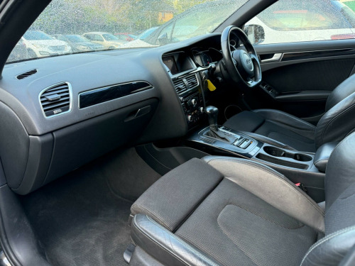 This 2013 Audi A4 TFSI Black Edition offers exceptional provenance with only two owners and a remarkably low mileage of 69,000 miles for its age. Benefiting from a full service history, including a recent service on 2nd September 2025, and a clear vehicle history check, this car is presented with 12 months MOT provided on purchase and a 3 month warranty for your peace of mind. Inside, you'll find a comfortable and stylish cabin featuring Alcantara and leather sports seats in black, leather armrests, and the Audi Symphony Radio.This Audi A4 TFSI Black Edition stands out with its impressive fuel economy of 49 mpg, indicating how it is better than other similar vehicles in its class. Further enhancing its appeal are its low insurance group and low CO2 emissions, making it an economical choice. The car is also equipped with advanced technology, including Mobile Telephone Preparation with Audi Connect and Bluetooth, as well as the Audi Parking System Advanced, complete with front and rear parking sensors and parking assistance, ensuring a convenient and safe driving experience. v power socket, 12v power socket - luggage compartment, 19in alloy wheels - 5-arm rotor design titanium finish, abs - anti-lock braking system, ami - audi music interface, aux-in socket, acoustic parking system - rear, airbags - driver, airbags - front passenger, airbags - front side system, airbags - head system, alarm - thatcham category 1, audi parking system plus, auto opening boot lid, auto-dimming rear-view mirror, automatic wipers with rain sensor, bang and olufsen sound system, black styling package, climate control - electronic 3-zone, cloth headlining in black, concert radio, cruise control, dab digital radio, door mirrors - electrically adjustable and heated, drivers information system - dis, esp - electronic stability programme, electric windows - front and rear, electrically adjustable 4-way lumbar support, electromechanical power steering, front centre armrest, front fog lights, headlights - automatic adjustment, headlights - bi-xenon plus, headlights washers, isofix child seat preparation front and rear with passenger airbag deactivation switch, inlays - piano finish - black, led daytime running lights, mobile telephone preparation - bluetooth interface, remote central locking, sound package, space saver spare wheel, split-folding rear seats, sport suspension, steering wheel - 3-spoke leather-multifunction-flat bottomed-shift paddles, steering wheel - height and reach adjustable, steering wheel - multi-function, audi drive select, audi parking system advanced, audi symphony radio, mobile telephone preparation - high with audi connect, technology package - advanced, tyre pressure loss indicator, audi hill hold assist, alcantara - leather - sports seats - black, steering wheel - audi exclusive leather covered, leather armrests