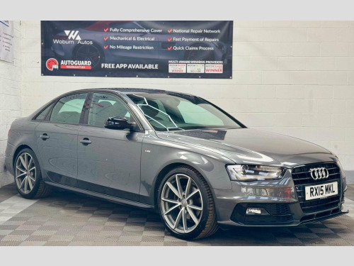 With only one previous owner, this 2015 Audi A4 Black Edition Plus is a superb example of a well-maintained vehicle. The A4, a stylish saloon from Audi, boasts a 1.8L petrol engine and is a Euro 6 emissions class vehicle. As a Black Edition, This particular A4 stands out with its impressive fuel economy, achieving up to 49 mpg, meaning fewer trips to the petrol station. Furthermore, its low CO2 emissions mean you can drive with a cleaner conscience. The Audi A4 offers a blend of performance, luxury, and practicality, making it an excellent choice for discerning drivers. , HPI CLEAR,2 KEYS, FINANCE AVAILABLE WITH £0 DEPOSIT AT COMPETITIVE RATES, PLEASE VISIT WWW.woburnautos.co.uk or CALL 01525868505, EXTENDED WARRANTY AVAILABLE ON ALL OUR CARS (3, 6, 12, 18, 24) , COMES WITH PREMIUM 3 MONTHS WARRANTY, MOT VALID TILL 28/02/2026,SERVICE HISTORY, RECENT SERVICE AT 71K,BANG AND OLUFSEN SOUND SYSTEM,SATELLITE NAVIGATION,PARKING SENSORS FRONT AND REAR,BLACK SIDE SKIRTS,ONLY ONE PREVIOUS OWNER,REAR SUN BINDS. SMOOTH ENGINE AND GEARBOX, CLEAN BODYWORK AS OF ITS AGE, CLEAN INTERIOR, CLEAN ALLOYS WITH GOOD TYRES, VIEWING RECOMMENDED, PART EX WELCOME, —————————————— WOBURN AUTOS IS TRUSTED AND LEADING USED CAR DEALERSHIP IN LEIGHTON BUZZARD. OUR VEHICLES ARE SUITABLE FOR ALL OUR CUSTOMERS NEEDS. FOR MORE INFO AND TO VIEW OUR STOCK PLEASE VISIT OUR WEBSITE WWW.WOBURNAUTOS.CO.UK —————————————— OUR WORKING HOURS ARE MONDAY TO SATURDAY 10AM TO 6PM AND ON SUNDAY 10AM TO 4:00PM. —————————————SOCIAL DISTANCING IN PRACTICE, BY APPOINTMENT ONLY, ACCEPT ALL DEBIT/CREDIT CARDS, p/x welcome