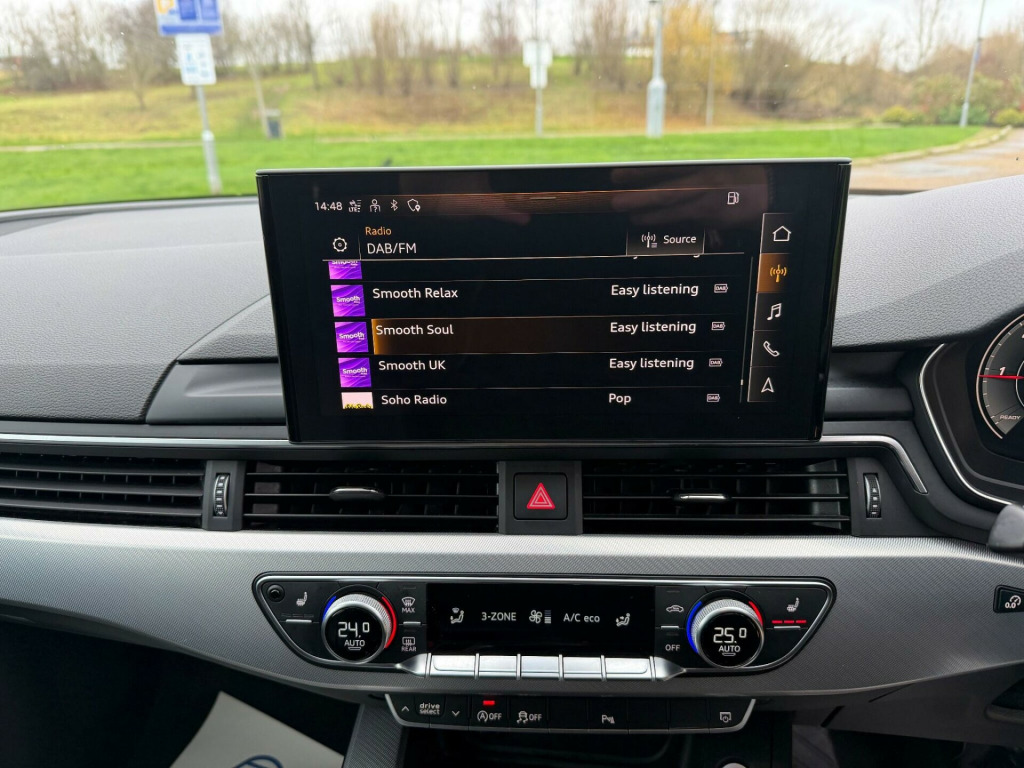 This 2021 Audi A4 TDI Sport Edition presents a remarkable opportunity with its exceptionally low mileage of just 37,200 miles for its age. This Euro 6 compliant model is powered by an efficient 2.0 litre diesel engine, offering a compelling blend of performance and economy. The Sport Edition trim ensures a refined driving experience, complemented by a suite of advanced features designed for convenience and safety. These include a rear view camera with parking assistance, front and rear parking sensors as part of the Parking System Plus, and deluxe 3 zone electronic climate control for personalised comfort. Connectivity is seamless thanks to the Audi Smartphone Interface, supporting both Android Auto and Apple CarPlay, alongside a Bluetooth interface for hands free calls and audio streaming.This Audi A4 stands out with its impressive fuel economy, achieving a highlight of 59 miles per gallon, which indicates it is more economical than many similar vehicles. Furthermore, its low insurance group rating suggests that running costs will be more affordable compared to other cars in its class. The vehicle also boasts low CO2 emissions, a positive indicator of its environmental efficiency. These combined highlights make this Audi A4 TDI Sport Edition a sensible and attractive choice for discerning drivers., blue tank 24 litres, fuel tank 54l, 18in alloy wheels - 8.0j 10-spoke dynamic design, 2 usb charging ports, 3-spoke leather high multifunction sport steering wheel, 4-way electric lumbar support, 6-airbag system, 8 passive loudspeakers, anti theft locking wheel bolts, anti-theft alarm, audi connect infotainment services (36 month subscription from new), audi connect safety and service, audi drive select, audi smartphone interface, audi virtual cockpit, auto-dimming rear-view mirror, automatic start-stop with coasting functionality and efficiency programme, bluetooth interface, body coloured side sill trims, comfort dynamic suspension, cruise control system with speed limiter, dab digital radio reception, deluxe 3-zone electronic climate control, door handles - body coloured, door mirrors - folding with auto-dimming, door sill trims with aluminium inlay, esc - electronic stabilisation control inc abs - asr and edl, electric boot lid release, electric windows - front, electromechanical power steering, email - calendar and text messages can be displayed on your vehicles mmi, first aid kit and warning triangle, front centre armrest, front sports seats, heated front seats, high gloss package, hill hold assist, isofix child seat mounting and top tether, inlays - aluminium ellipse - silver, keyless go, led headlights and rear lights with led daytime-running lights, led interior lighting pack, light and rain sensor, mmi navigation plus including mmi touch, manual seat adjustment, multi collision brake assist, parking system plus - front and rear sensors, pop-up bonnet for pedestrian protection, pre-sense city, privacy glass, radiator grille - titanium black and air inlets with inserts in matt aluminium silver, rear diffuser in matt titanium black with trim strip in matt aluminium silver, rear-view camera, seat belt monitoring, split-folding rear seat bench in 3 parts - 40-20-40 with rear centre armrest, sport front and rear bumpers and side skirts, steering wheel - gear shift paddles, tailpipe trims in matt aluminium silver, titanium black styling pack, tool kit, tyre repair kit, voice control, windscreen with acoustic glazing