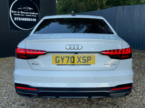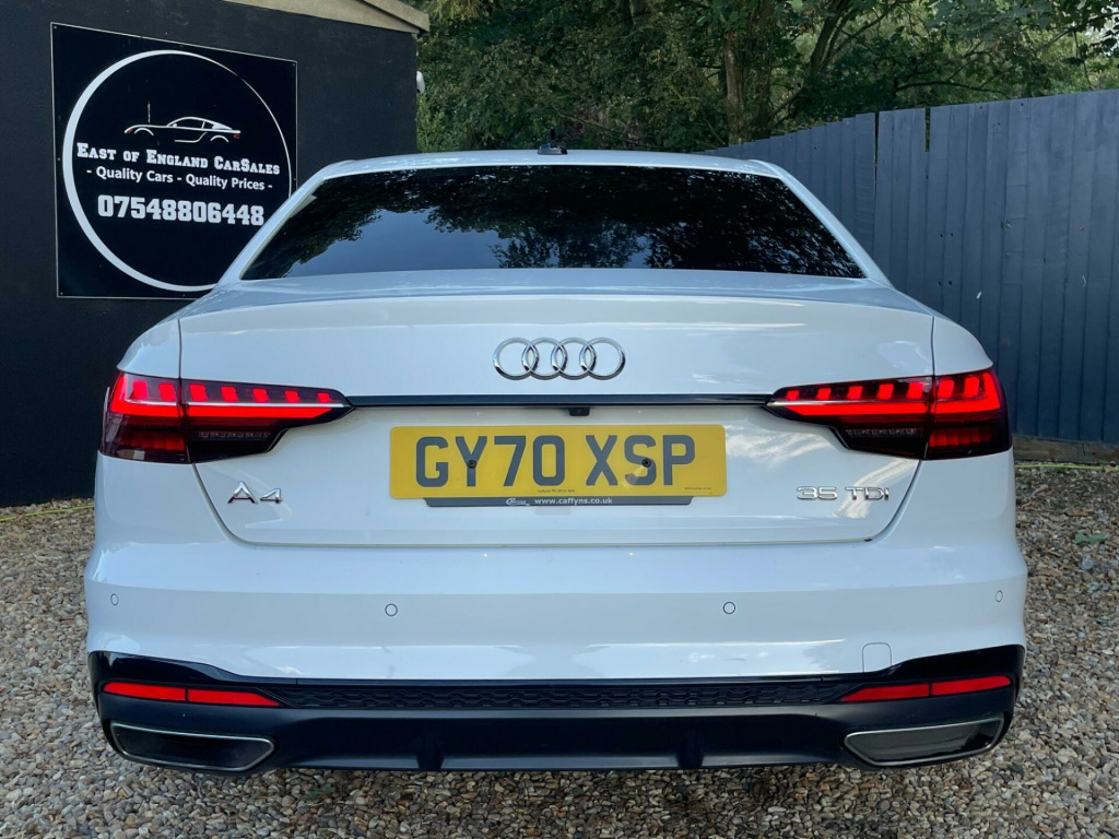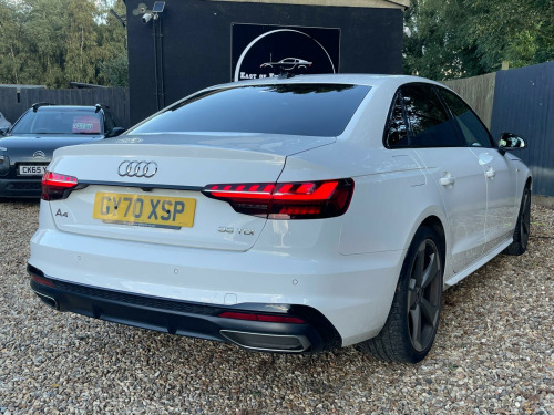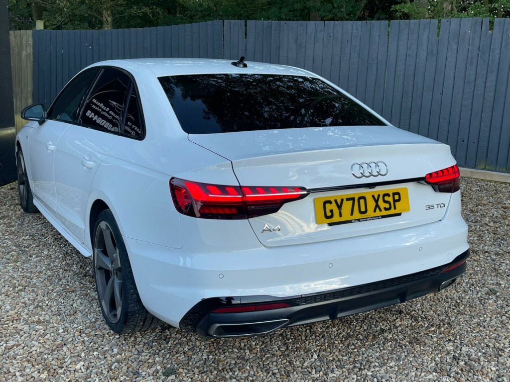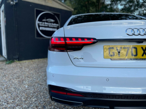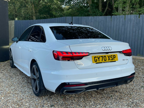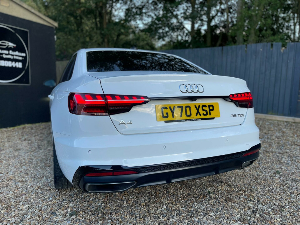 Experience style, comfort and efficiency with this stunning 2021 Audi A4 2.0 TDI 35 Black Edition S Tronic. Finished in striking white, this premium saloon combines sleek looks with excellent driving dynamics, making it the perfect choice for both business and everyday use. With only 40,900 miles and just one owner from new, it has been very well cared for and remains in superb condition inside and out.Powered by a 2.0 TDI Euro 6 diesel engine producing 163 PS, it delivers the perfect balance of performance and efficiency. The smooth S Tronic automatic gearbox ensures a refined drive, while the front-wheel drive setup provides excellent handling and fuel economy. Fully ULEZ compliant, this A4 can be driven in London and other low-emission zones without charge.The sought-after Black Edition trim adds extra road presence with its exclusive styling, 19” alloy wheels, privacy glass, and sporty S line details. Inside, you’ll find a premium cabin finished with half leather/Alcantara upholstery, a flat-bottom steering wheel, and Audi’s advanced infotainment system with navigation and smartphone connectivity.With its combination of low ownership, strong specification, and head-turning looks, this Audi A4 Black Edition represents excellent value for anyone looking for a modern, stylish, and efficient executive car.. 19in Alloy Wheels - 8.5J 5-Arm Rotor Design Matt Titanium Look - Diamond Cut, 2 USB Charging Ports, 4-Way Electric Lumbar Support, 6-Airbag System, 8 Passive Loudspeakers, Anti Theft Locking Wheel Bolts, Anti-Theft Alarm, Audi Connect Infotainment Services (36 Month Subscription From New), Audi Connect Safety and Service, Audi Drive Select, Audi Smartphone Interface, Audi Virtual Cockpit, Auto-Dimming Rear-View Mirror, Automatic Start-Stop with Coasting Functionality and Efficiency Programme, Bluetooth Interface, Body Coloured Door Mirrors, Body Coloured Side Sill Trims, Cloth Headlining in Black, Contrast Stitching on Seats - Steering Wheel and Gear-Lever Gaiter, Cruise Control System with Speed Limiter, DAB Digital Radio Reception, Deluxe 3-Zone Electronic Climate Control, Door Handles - Body Coloured, Door Mirrors - Folding with Auto-Dimming, ESC - Electronic Stabilisation Control inc ABS - ASR and EDL, Electric Boot Lid Release, Electric Windows - Front, Electromechanical Power Steering, Email - Calendar and Text Messages can be Displayed on your Vehicles MMI, First Aid Kit and Warning Triangle, Flat-Bottomed 3-Spoke Leather High Multi-Function Sport Steering Wheel, Front Centre Armrest, Front Spoiler Lip in Body Colour, Front Sports Seats, Gear Knob - Perforated Leather Black, Headlights - High-Beam Assist, Heated Front Seats, High Gloss Package, Hill Hold Assist, ISOFIX Child Seat Mounting and Top Tether, Illuminated Door Sill Trims with S Logo, Inlays - Piano Finish - Black, Keyless Go, LED Daytime Running Lights, LED Headlights with LED Rear Lights and Dynamic Rear Indicators, LED Interior Lighting Pack, Light and Rain Sensor, MMI Navigation Plus including MMI Touch, Manual Seat Adjustment, Multi Collision Brake Assist, Parking System Plus - Front and Rear Sensors, Pedals and Footrest - Stainless Steel, Pop-Up Bonnet for Pedestrian Protection, Pre-Sense City, Privacy Glass, Radiator Grille with Honeycomb Structure in Grained Matt Black, Rear-View Camera, S Line Rear Diffuser in Matt Titanium Black with Trim Strip in Matt Aluminium Silver, S line Front and Rear Bumpers and Side Skirts, Seat Belt Monitoring, Side Air Inlets in Grained Matt Black with Inlay in Matt Aluminium Silver, Split-Folding Rear Seat Bench in 3 Parts - 40-20-40 with Rear Centre Armrest, Sport Suspension, Steering Column - Rake and Reach Adjustment, Steering Wheel - Gear Shift Paddles, Tailpipe Trims in Matt Aluminium Silver, Titanium Black Styling Pack, Tool Kit, Tyre Repair Kit, Voice Control, Windscreen with Acoustic Glazing. Full service history
