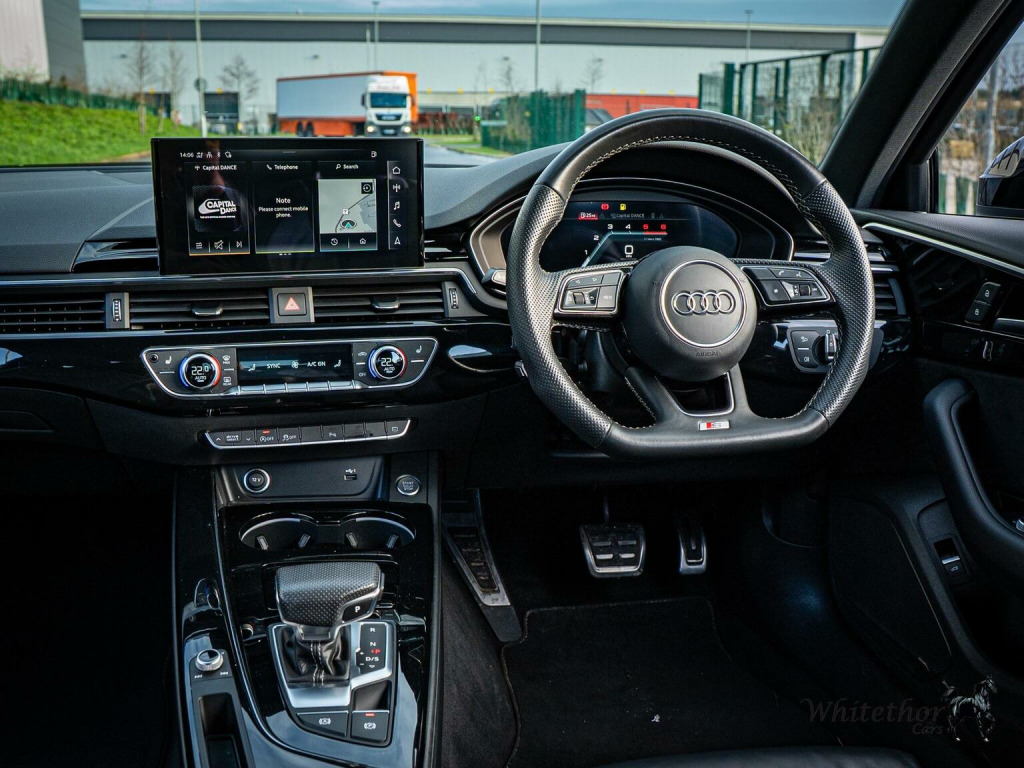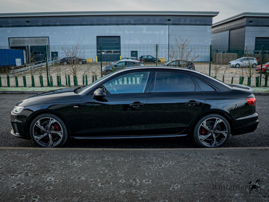 FREE DELIVERY WITHIN 200 MILES – Here we have a stunning Audi A4 Saloon Black Edition finished in Black Metallic. This being the Black Edition comes with fantastic spec from the factory, with things such as: Audi Smartphone Interface – Audi Virtual Cockpit – Cruise Control System with Speed Limiter – DAB Digital Radio Reception – Deluxe 3-Zone Electronic Climate Control – Keyless Go – LED Daytime Running Lights – LED Headlights with LED Rear Lights and Dynamic Rear Indicators – LED Interior Lighting Pack – Light and Rain Sensor – High Beam Assist – MMI Navigation Plus including MMI Touch – Heated Front Seats – Rear View Camera – Pre-Sense City – Privacy Glass – and more. , This example also benefits from optional extras such as: 19in 5-Arm Rotor Matt Titanium Look Alloy Wheels – Fine Nappa Leather in Black – and more. This car has had 5 services in total (4 Audi, 1 Specialist) last carried out at 43,700 miles. Gearbox oil changed at 40,700 miles. The MOT expires September 2026. 3 Month £2000 Claim Limit Warranty is included with the sale but the option to upgrade to a 12M, 24M, & 36M £5000 Claim Limit Nation Wide Premium Autoguard Warranty with Breakdown Cover is available. Multiple Finance Options, Competitive Part Exchange Prices. All Cars Are HPI, MotorCheck & Experian Clear. Further Vehicle Delivery Options Also Available. All Rights Reserved - Whitethor cars exercise all reasonable care and skill in providing you with vehicle information and data. The specification is attained through HPI, Experian & Autotrader VRM. Options Sold as packs may be shown individually, spec check is a guide so please contact us or physically verify any info that is crucial.