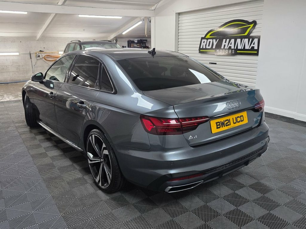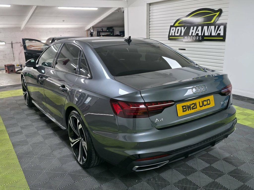 A beautiful 2021 Audi A4 S Line ready for viewing at Roy Hanna Motors! 2 Keys. 2 Owners from new. MOT to 25th June 2026. We will fully service this car and it will have a full pre-delivery check for its new owner. **Brand new Alloy Wheels & Tyres shown in pictures are an optional extra ** * We have a variety of wheels to chose from for each vehicle* Packed full of factory extras like - ~ MMI Navigation plus with MMI touch. ~ 10.1" high resolution colour MMI. ~ Audi connect safety and service (e-call). ~ Audi parking system plus with front and rear sensors. ~ Voice control system. ~ Audi virtual cockpit. ~ Rear view camera. ~ Audi driver select. ~ Driver's information system. ~ Bluetooth hands free telephone connection. ~ Audi music interface. ~ LED Daytime running lights. ~ Front fog lights. ~ Voice control system. ~ Front sports seats. ~ Heated rear windscreen. ~ Remote control central locking. ~ Climate and traction controls. ~ Steering wheel mounted controls. ~ AUX & USB connectivity. ~ CD/Radio Player. ~ Body Coloured Bumpers. ~ Electric windows. *We Have Many Different Finance HP & PCP Deals Available To Suit Your Budget, You Can Drive Away In Your New Car With £0 Deposit & Pay Nothing For 2 Full Months! *For A Personalised Quote Give Us A PM / Text / Call Or Propose Yourself For Finance On Our Website *All Usual Dealer Facilities Available. *Credit/Debit Cards Accepted. *Trade Ins Welcome. *Every Vehicle Comes With Warrant 19in Alloy Wheels - 8.5J 5-Arm Torsio De, 2 USB Charging Ports, 3-spoke Leather High Multi-function Spor, 4-Way Electric Lumbar Support, 6-Airbag System, 8 Passive Loudspeakers, Anti Theft Locking Wheel Bolts, Anti-Theft Alarm, Audi Connect Infotainment Services (36 M, Audi Connect with Amazon Alexa Integrati, Audi Drive Select, Audi Smartphone Interface, Audi Virtual Cockpit, Auto-Dimming Rear-View Mirror, Automatic Start-Stop with Coasting Funct, Bluetooth Interface, Body Coloured Door Mirrors, Body Coloured Side Sill Trims, Cloth Headlining in Black, Contrast Stitching on Seats - Steering W, Cruise Control System with Speed Limiter, DAB Digital Radio Reception, Deluxe 3-Zone Electronic Cl