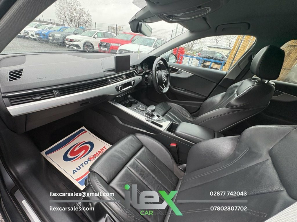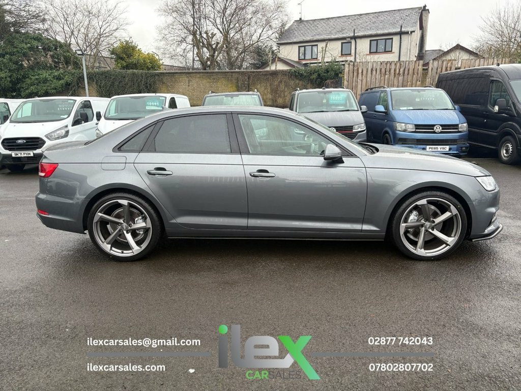 2019 Audi A4 2.0 TDI 35 Sport S Tronic A sharp Grey Audi A4 Sport that delivers executive comfort, smooth automatic driving and excellent economy. Well specced, refined and ideal for commuting or motorway miles. Highlights: 2.0 TDI Diesel | S Tronic Automatic | Euro 6 150PS | 96,336 Miles | 49.6 MPG Sport Model with Comfort Dynamic Suspension Heated Front Seats Deluxe 3-Zone Climate Control MMI Navigation | Audi Smartphone Interface DAB Radio | Bluetooth | USB Keyless Go | Electric Boot Release Front & Rear Parking Sensors Xenon Headlights with LED DRLs Folding Heated Door Mirrors 20" Alloy Wheels (£895 optional extra) Price: £13,995 Ilex Car Sales 416 Ballyquin Road, Dungiven, Derry, County Londonderry, BT47 4NQ 02877 742043 | 07802 807702 www.ilexcarsales.co.uk – View all available stock 18in Alloy Wheels - 10-Spoke-V Design, 2 x USB Charging Ports and 1 x AUX-IN, 4-Way Electric Lumbar Support, 6-Airbag System, ABS - Anti-Lock Braking System, Air Inlets - Titan Black with Two Horizo, Anti Theft Locking Wheel Bolts, Anti-Theft Alarm, Audi Connect Safety and Service - e-call, Audi Drive Select, Audi Sound System, Auto-Dimming Rear-View Mirror, Bluetooth Interface, Body Coloured Door Mirrors, Chrome-Plated Trims for Exhaust System, Comfort Dynamic Suspension, Cruise Control System with Freewheeling , DAB Digital Radio, Deluxe 3-Zone Electronic Climate Control, Door Mirrors - Electrically Adjustable a, Door Mirrors - Electrically Folding, Door Sill Trims with Aluminium Inlay, Dr