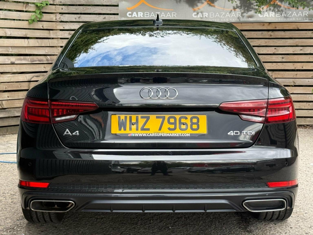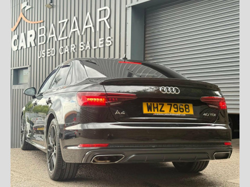 Welcome to Car Bazaar of Sheffield. Explore the perfect blend of stylish looks with the Audi A4 2.0 TDI 40 Black Edition S Tronic available at Car Bazaar! This vehicle comes with some fantastic features which include, Front and Rear Parking Aid, Cruise Control, Part Leather/Alcantara Interior, Auto Headlights, Auto Wipers, Multiple Driving Modes, Dual Climate Control, Heated Seats, Infotainment System with Apple Car Play and Android Auto, Bluetooth, USB Connectivity, DAB, Electric Handbrake, Please call for further details. , ________________________________________, Warranty: This exceptional vehicle comes with a 3-month complimentary warranty from Car Bazaar, with an option for you to extend to 6,9,12,24 months. ________________________________________, Flexible Finance Options: Take advantage of our competitive low-rate finance deals, including zero-deposit options. With access to multiple trusted lenders, we can tailor a finance plan that suits your budget and helps make owning your dream car a reality. ________________________________________, Appointment Only Basis: At Car Bazaar, we prioritise your convenience. We operate on an appointment-only basis to provide personalised attention and a dedicated service experience. . ________________________________________, Free Local Delivery: Enjoy complimentary delivery within a 10-mile radius, with affordable nationwide delivery options also available. ________________________________________, MOT and Service Assurance: If the vehicle has less than 6 months remaining on its MOT, well provide a fresh 12-month MOT. If the car hasnt been serviced in the last 6 months, well ensure its serviced before delivery for your peace of mind. ________________________________________, Reservation: Call today and reserve this vehicle for only £99 which is fully refundable. , ________________________________________, Contact Us: Visit our website at www.thecarbazaar.co.uk to explore our extensive inventory or call us on 0114 399 7040. , ________________________________________