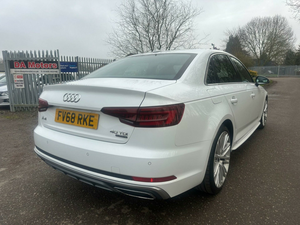 This 2018 Audi A4 2.0 TDI 40 S line S Tronic quattro Euro 6 (s/s) 4dr Saloon is currently available for £12,990 in Lutterworth Leicestershire with Diesel engine and Automatic gearbox. For more information or to arrange a viewing, click here to send us an email using form below.
