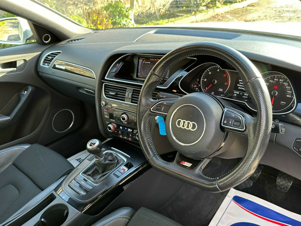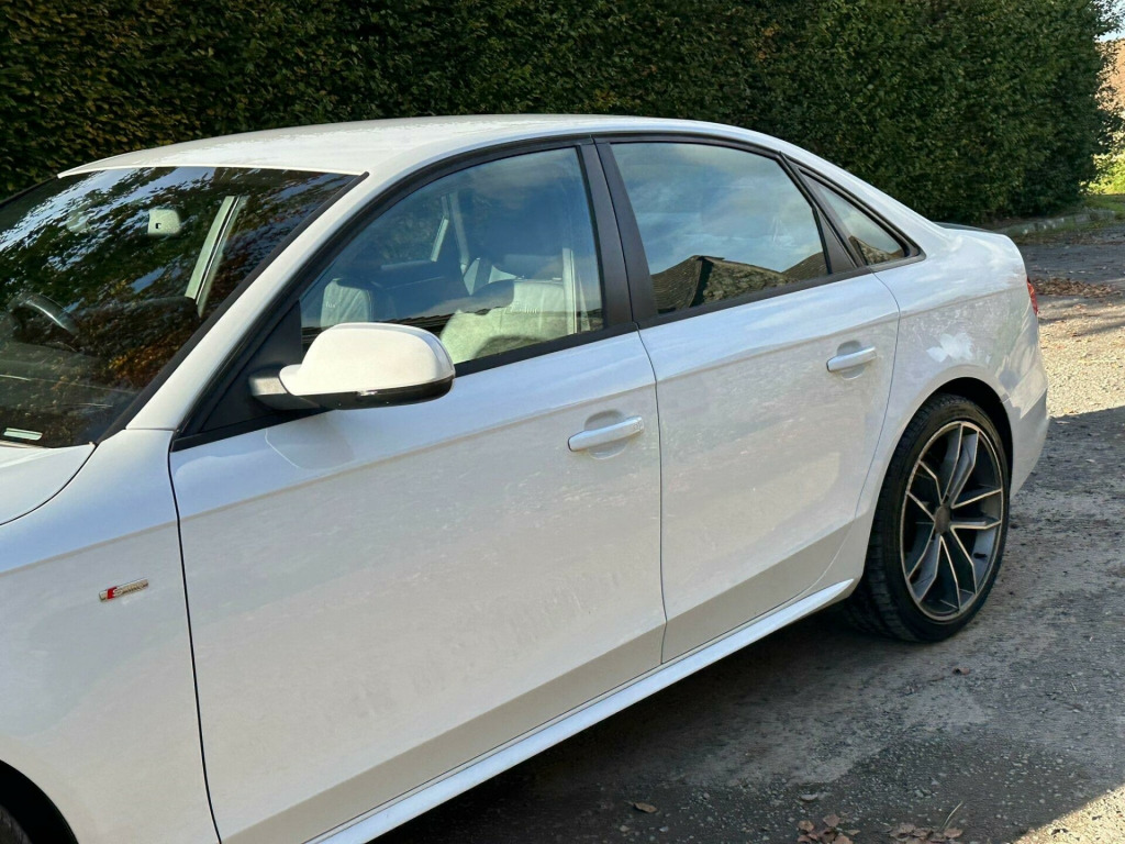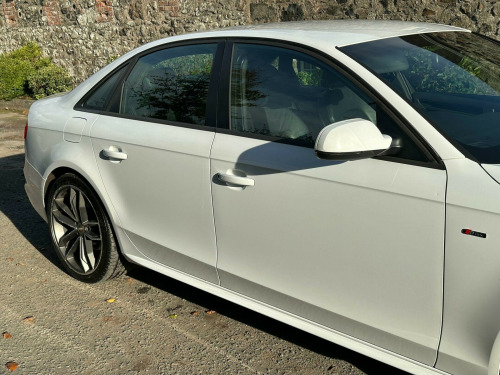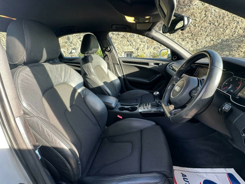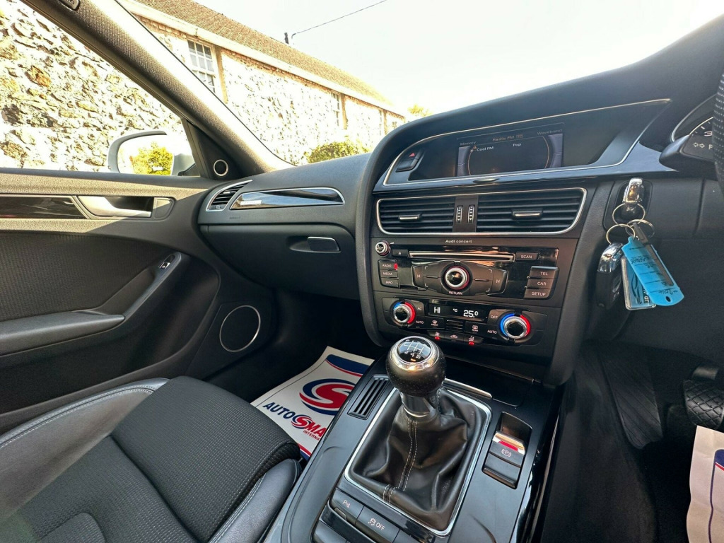 This 2014 Audi A4 TDI Black Edition offers a superb blend of style and practicality, boasting a powerful 2.0 litre diesel engine and four wheel drive for confident handling. As a Black Edition model, it presents a striking aesthetic, complemented by desirable features such as rear parking sensors with parking assistance, a premium Bang and Olufsen sound system for an immersive audio experience, and electronic three zone climate control to ensure comfort for all occupants. Further enhancing its appeal are the mobile telephone preparation with a Bluetooth interface for seamless connectivity and automatic headlights activated by a light sensor.This Audi A4 is also noted for its low insurance group, making it a more economical choice for many drivers. The inclusion of these advanced features and its efficient diesel engine, combined with Audi's renowned build quality, position this vehicle as a distinguished option within its class, offering a refined and enjoyable driving experience. v power socket, 12v power socket - luggage compartment, 19in alloy wheels - 5-arm rotor design titanium finish, 6.5in display screen, abs - anti-lock braking system, ami - audi music interface, aux-in socket, acoustic windscreen, airbags - driver, airbags - front passenger, airbags - front side, airbags - head system, alarm - thatcham category 1, anti theft locking wheel bolts, audi parking system plus, audi sound system, auto opening boot lid, auto-dimming rear-view mirror, automatic wipers with rain sensor, bang and olufsen sound system, black styling package, car jack, climate control - electronic 3-zone, cloth headlining in black, colour drivers information system - dis, concert radio - mp3/cd player, cruise control, dab digital radio, daytime running lights, diffuser - platinum grey, door mirrors - electrically adjustable and heated, door sill trims - aluminium optic, door sill trims - s line, esp - electronic stability programme, electric windows - front and rear, electrically adjustable 4-way lumbar support, electromechanical parking brake, electromechanical power steering, exterior aluminium package, first aid kit, front centre armrest, front fog lights, front passenger airbag deactivation switch, front sports seats, front and rear floor mats, halogen headlights, headlights - coming-leaving home function, headlights - light sensor, headlights - range adjustment, isofix child seat preparation front and rear, immobiliser, inlays - piano finish - black, interior chrome package, misfuelling inhibition, mobile telephone preparation - bluetooth interface, rear armrest, rear parking sensors, remote central locking, rest recommendation system, seats - drivers manual height adjustment, space saver spare wheel, speakers x14, split-folding rear seats, sport suspension, steering wheel - 3-spoke multifunction flat bottomed, steering wheel - height and reach adjustable, steering wheel - multi-function, tp memo - automatically saves traffic news, tool kit, voice control - navigation, warning triangle