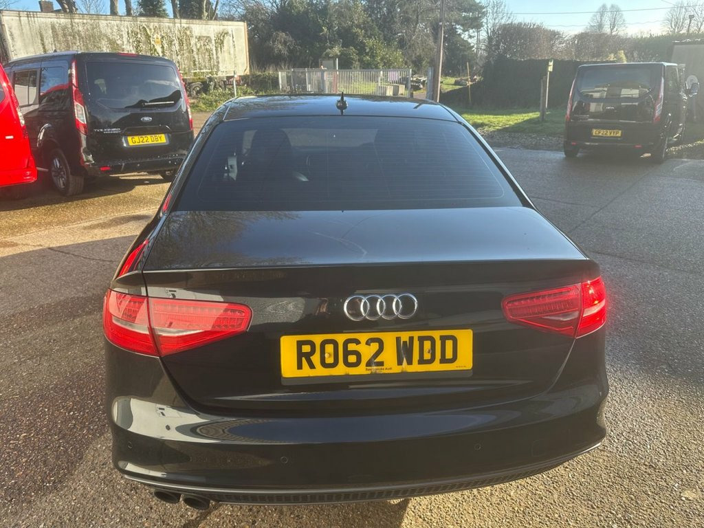 With an MOT valid until October 2026, this Audi A4 TDI Black Edition from 2012 offers excellent peace of mind for its next owner. This four wheel drive model is powered by an efficient 2.0 litre diesel engine and has had only two previous owners. It comes with a full service history, and benefits from the desirable Black Edition trim. Notable features include the Audi Parking System Plus with front and rear sensors, a luxurious Bang and Olufsen sound system, and Bluetooth connectivity for handsfree calls. Bi-Xenon Plus headlights provide excellent visibility, further enhancing the driving experience. This Audi A4 TDI Black Edition stands out with its low insurance group, making it an economical choice for many drivers. The inclusion of features such as the Audi Parking System Plus and Bi-Xenon Plus headlights demonstrates a higher specification compared to many other vehicles in its class. Combined with the premium Bang and Olufsen sound system and the practical Bluetooth interface, this car offers a refined and well equipped driving experience. 12V Power Socket - Centre Console, 12V Power Socket - Luggage Compartment, 19in Alloy Wheels - 5-Arm Rotor Design T, 6.5in Display Screen, ABS - Anti-Lock Braking System, AMI - Audi Music Interface, AUX-IN Socket, Acoustic Windscreen, Airbags - Driver, Airbags - Front Passenger, Airbags - Front Side, Airbags - Head System, Alarm - Thatcham Category 1, Anti Theft Locking Wheel Bolts, Audi Parking System Plus, Auto Opening Boot Lid, Auto-Dimming Rear-View Mirror, Automatic Wipers with Rain Sensor, Bang and Olufsen Sound System, Black Styling Package, Bumpers - Front and Rear - S Line Design, Car Jack, Climate Control - Electronic 3-Zone, Cloth Headlining in Black, Colour Drivers Information Sy