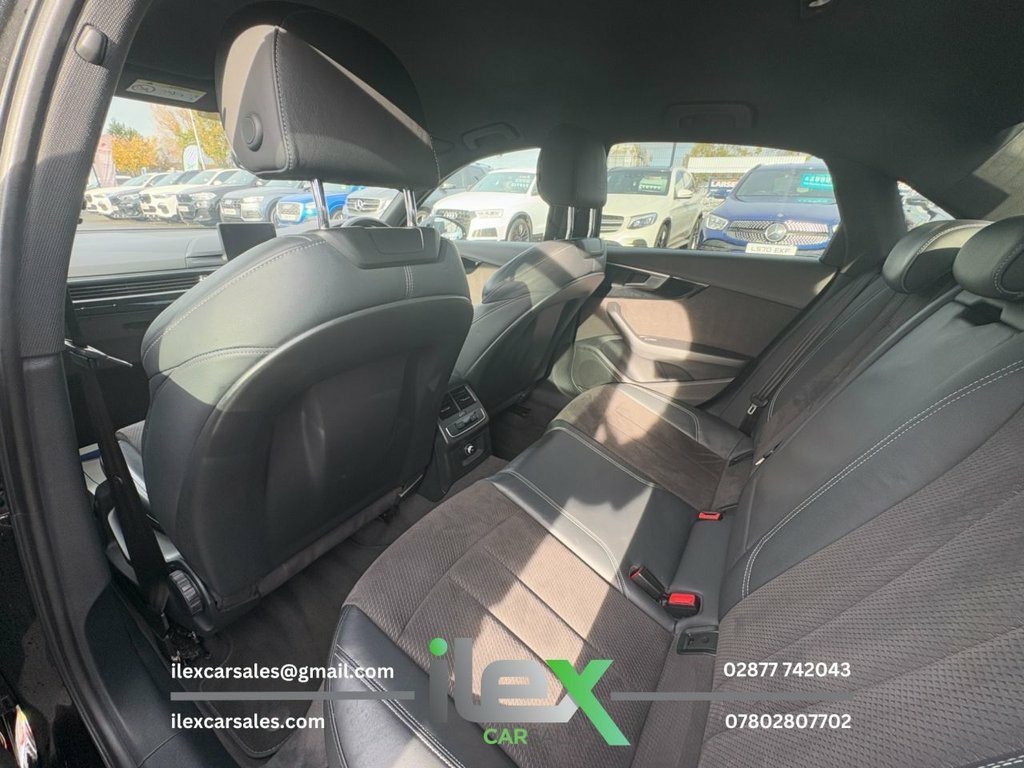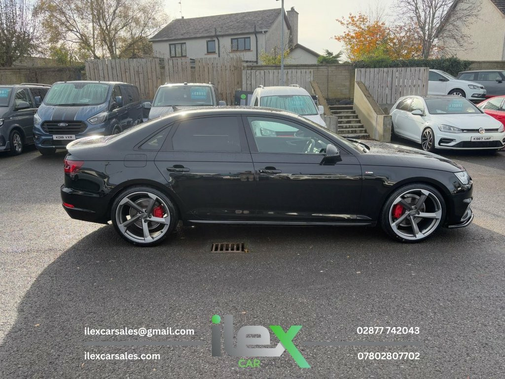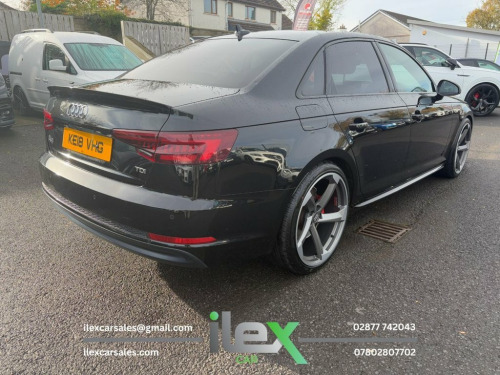2018 Audi A4 2.0 TDI Black Edition This is the A4 everyone wants — Black Edition styling, S-Tronic gearbox, serious road presence and loaded spec. Sleek, sharp and finished in Brilliant Black with privacy glass and those iconic 19" Rotor alloys. Highlights: 2.0 TDI | S-Tronic Auto 190BHP | Only 81,294 Miles Black Edition Styling Pack 20" alloys £895 optional extra Heated Front Sports Seats Flat-Bottom Multi-Function Steering Wheel Audi Smartphone Interface | DAB | Bluetooth Deluxe 3-Zone Climate Control MMI Navigation | Parking System Plus LED Headlights + Dynamic Rear Indicators Price: £14,995 416 Ballyquin Road, Dungiven, Co. Derry 02877 742043 | 07802 807702 www.ilexcarsales.co.uk – View all stock 19in Alloy Wheels - 5-Arm Rotor Matt Tit, 4-Way Electric Lumbar Support, 6-Airbag System, Anti Theft Locking Wheel Bolts, Anti-Theft Alarm, Audi Connect - 3 Month Trial, Audi Connect Safety and Service - e-call, Audi Drive Select, Audi Smartphone Interface, Audi Sound System, Auto-Dimming Rear-View Mirror, Black Styling Package, Bluetooth Interface, CD Drive, Chrome-Plated Trims for Exhaust System, Cloth Headlining in Black, Cruise Control System with Freewheeling , DAB Digital Radio, Deluxe 3-Zone Electronic Climate Control, Door Handles - Body Coloured, Door Mirrors - Electrically Adjustable a, Driver Information System - 7in Colour D, Electric Boot Lid Release, Electric Windows - Front an