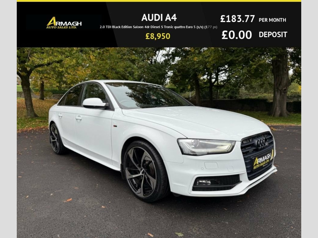 This 2013 Audi A4 2.0 TDI Black Edition Saloon 4dr Diesel S Tronic q Saloon is currently available for £8,950 in Armagh with Diesel engine and Automatic gearbox. For more information or to arrange a viewing, click here to send us an email using form below.