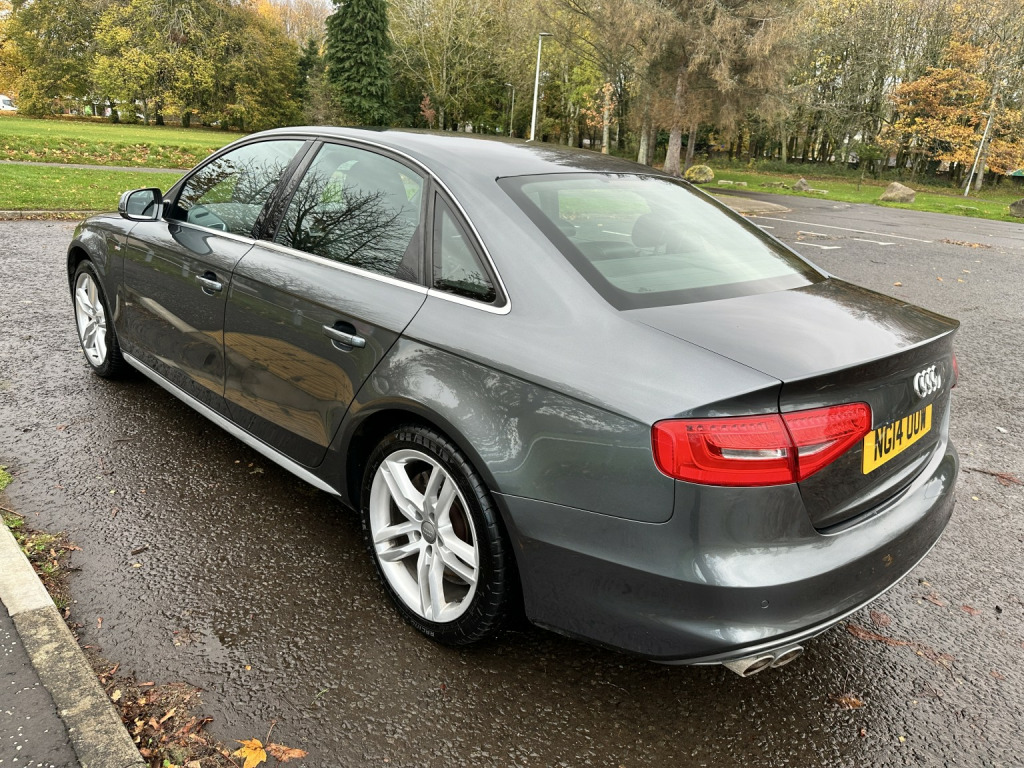 2014 Audi A4, S-LINE, 2.0 DIESEL, 4dr Saloon with Service History. Finished in Daytona Grey Pearl effect, with Alloy Wheels and Half Leather Seats, It has covered 106,455 Miles with Service History. The Timing Belt & Water Pump replaced at 85,000 Miles, New EGR Cooler in Jan 2025, Road Tax is only £35.00 for the year and the average Fuel Consumption is an amazing 61.4mpg. As expected for the year it has a couple of minor blemishes here and there but overall looks amazing! , It is a very comfortable spacious car with a large boot space. , If required, This Vehicle Will Come With: ..1 Years MOT ..Serviced ..3 Months Warranty ..Valeted. , FOLLOW US ON FACEBOOK: ANGUS MOTOR COMPANY , , Finance Available - All Credit Levels Considered... Used Car Finance, Initially with no impact on your credit file... Applicants aged up to 75, IVAs, Debt Management Plans, CCJs, Self Employed, Retired, Unemployed Receiving Benefits, Zero Deposit Options, EU Driving Licences, Employed, Part Time. Fill in our Online Finance form and we will take care of everything for you... , CALL... 01307 477732, 53 DUNDEE ROAD , FORFAR, DD8 1HY, , Every effort has been made to ensure the accuracy of the above information but errors may occur. Please check with a salesperson.