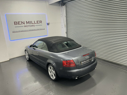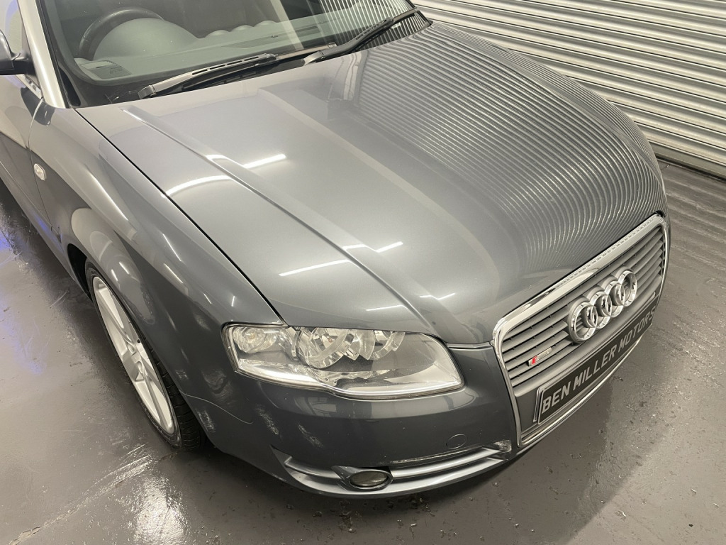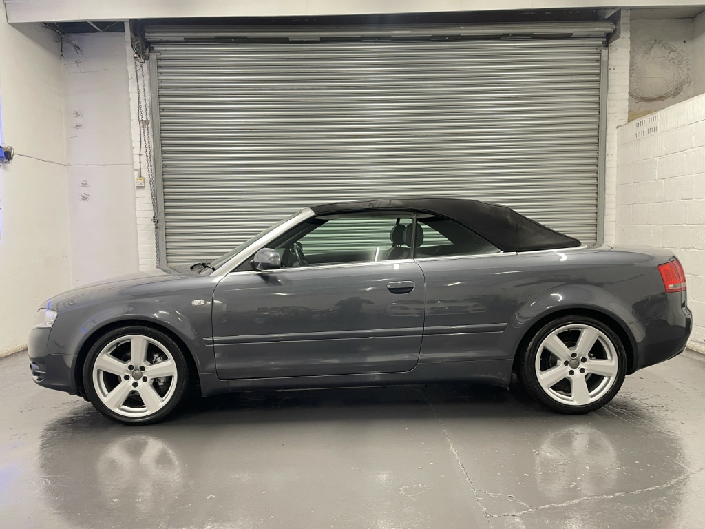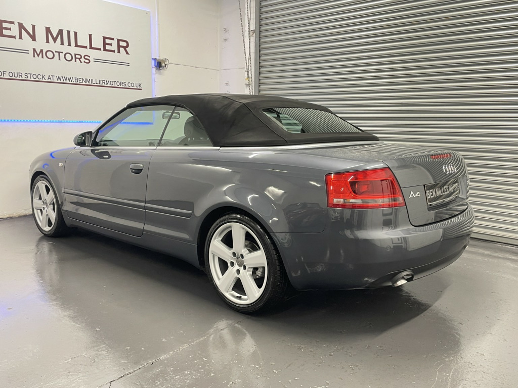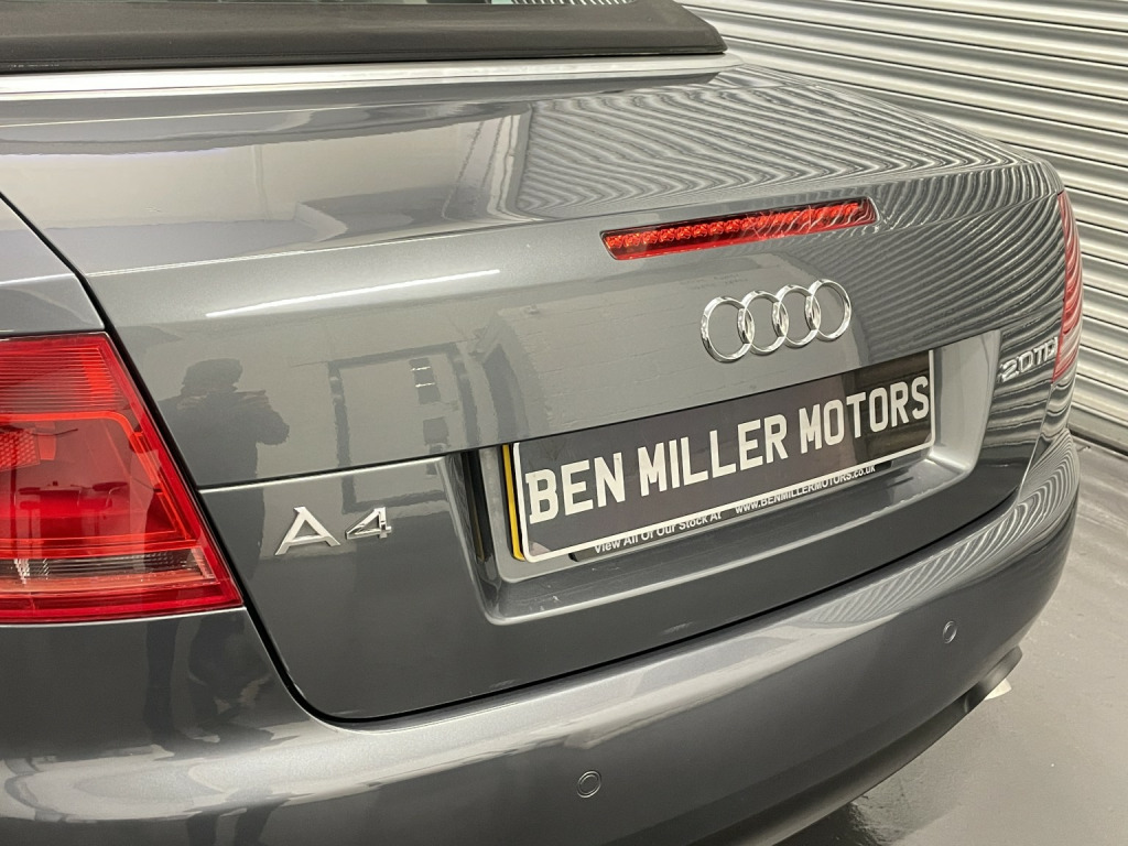Just arrived in stock at Ben Miller Motors is this Audi A4 Cabriolet. , A 2008 S-Line model powered by the 2.0 TDI engine with 6 speed manual gearbox. , Just 65,000 miles on the clock and lady owned for the last 14 years. , An excellent example finished in Dolphin Grey Metallic with black soft top roof and 18 alloy wheels. , The specification includes full leather interior, electric lumbar support, fully automatic convertible roof, stereo / CD player with BOSE premium sound system, rear parking sensors, air conditioning, front centre armrest, multifunction steering wheel, ISOFIX child seat anchor points. , Offered for sale with original owners manuals, spare key and service history. There are 7 stamps in the book including a full service which we will have carried out prior to sale. We have also had all of the alloy wheels professionally refurbished. , All of our cars come with a 12 month MOT and 3 months warranty. , Our facilities include part exchanges, finance and a relaxed indoor showroom for hassle-free viewings. , If you would like to arrange a viewing or would like a friendly chat about a particular vehicle please do not hesitate to call.