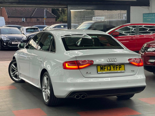 This Audi A4 TDI S line from 2013 boasts a clear vehicle history, offering you peace of mind. This well appointed model features a powerful yet efficient 2.0 litre diesel engine and is presented in the desirable S line trim. Inside, youll find comfort and convenience with Electronic 3 Zone Climate Control and a Bluetooth interface for seamless mobile phone connectivity. Parking is made easier with the Acoustic Parking System at the rear, and the Bi Xenon Plus headlights provide excellent visibility. This Audi A4 is a smart choice for many reasons, offering impressive fuel economy of up to 61 miles per gallon, which is significantly better than many other vehicles in its class. Furthermore, its low CO2 emissions and low insurance group rating indicate that running costs are kept to a minimum, making it an economical and practical option for your motoring needs. , We offer affordable car financing options with competitive APRs, including Zero deposit options, making it easier for you to get the car you want. Applying for finance and signing the agreement can be conveniently done online. Once everything is finalized, you can choose to have the car delivered to your doorstep or arrange a convenient collection time. Please note we deliver cars for only £99+fuel cost for any distance in the Uk between our store and your delivery location. There is also a 5-day Drive-Away insurance available. Our business takes great care in providing our customers with the best service possible from start to finish,, Family run business since 2005 that you can trust,, For further information please contact us on 07724 656445