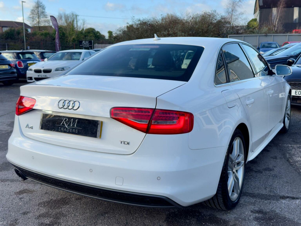 **APPLY FOR FINANCING DIRECTLY ON OUR WEBSITE**, RM TRADERS are Proud to Present this Stunning Audi A4 2.0 TDI S line Euro 5 (s/s) 4dr!, The Vehicle its Self is in Great Condition Mechanically and Cosmetically. EXTENSIVE SERVICE HISTORY AND CAMBELT DONE @ 90K!, Equipped with Parking Sensors,Multifunction Steering Wheel, Sat Nav, Bluetooth Handsfree , Cruise Control and Alloy Wheels. The car for its age is in GREAT Condition with minimal sign of wear for the age of the car. This is a well looked after car and please dont get this confused with the cheaper examples on the market. Please call for any more questions or book to view. ***6 MONTHS WARRANTY AS STANDARD**IN HOUSE FINANCE AVAILABLE FROM 9.9% APR!**