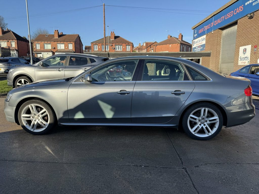 Scott's of Leeds used Car Sales are pleased to offer this AUDI A4 2.0 TDI S line Saloon 4 Door Diesel Manual in Grey. The car is in good condition throughout, in a lovely colour combination and a great specification including Satellite navigation, Bluetooth, Cruise control, Front & rear parking sensors, DAB digital radio, Automatic lights, Part leather seats, Voice command, Electric windows, 6 Speed gearbox, CD player, Drivers armrest, Isofix, Alloy wheels and much much more. The car will be supplied with an up to date service record including 9 services and an MOT until December 2026 ready to drive away. £35 Road Tax and great MPG. 3 MONTH NATIONWIDE WARRANTY provided with all vehicles. NATIONWIDE DELIVERY also available. A guaranteed 12 Months MOT can be added for an extra £100. DISCLAIMER: The above specification is true and correct. Any other specification listed elsewhere can sometimes be incorrect. Please check with Sales Executive to clarify this if needed prior to purchase. 12V Power Socket, 12V Power Socket - Luggage Compartment, 18in Alloy Wheels - 5-Twin Spoke Design, 6.5in Display Screen, ABS - Anti-Lock Braking System, Acoustic Windscreen, Airbags - Driver, Airbags - Front Passenger, Airbags - Front Side, Airbags - Head System, Alarm - Thatcham Category 1, Audi Sound System, Auto Opening Boot Lid, Auto-Dimming Rear-View Mirror, Automatic Wipers with Rain Sensor, Bumpers - Front and Rear - S Line Design, Car Jack, Climate Control - Electronic 3-Zone, Cloth Headlining in Black, Colour Drivers Information System - DIS, Concert Radio - MP3/CD Player, Cruise Control, DAB Digital Radio, Door Mirrors - Electrically Adjustable a, Door Sill Trims with S Line Logo,