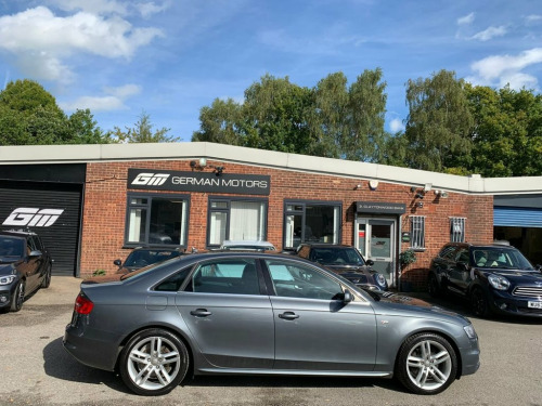 GERMAN MOTORS ARE PROUD TO OFFER THIS STUNNING A4 S LINE, 3 PREVIOUS OWNERS, FULL SERVICE HISTORY INCLUDING CAMBELT CHANGE, SAT NAV, FRONT AND REAR PARKING SENSORS, CRUISE CONTROL, AUTO LIGHTS, DAB RADIO, BLUETOOTH & MORE PLEASE CALL FOR MORE DETAILS /// VIEWING STRICTLY BY APPOINTMENT /// COMPETITIVE FINANCE AVAILABLE /// PART EXCHANGE WELCOME /// 12V Power Socket, 12V Power Socket - Luggage Compartment, 12V Power Socket x2, 18in Alloy Wheels - 5-Twin Spoke Design, 6.5in Display Screen, ABS - Anti-Lock Braking System, AUX-IN Socket, Acoustic Windscreen, Airbags - Driver, Airbags - Front Passenger, Airbags - Front Side, Airbags - Head System, Alarm - Thatcham Category 1, Anti Theft Locking Wheel Bolts, Audi Sound System, Auto Opening Boot Lid, Auto-Dimming Rear-View Mirror, Automatic Wipers with Rain Sensor, Bumpers - Front and Rear - S Line Design, Car Jack, Climate Control - Electronic 3-Zone, Cloth Headlining in Black, Colour Drivers Information System - DIS, Concert Radio - MP3/CD Player, Cruise Control, DAB Digital Radio, Diffuser