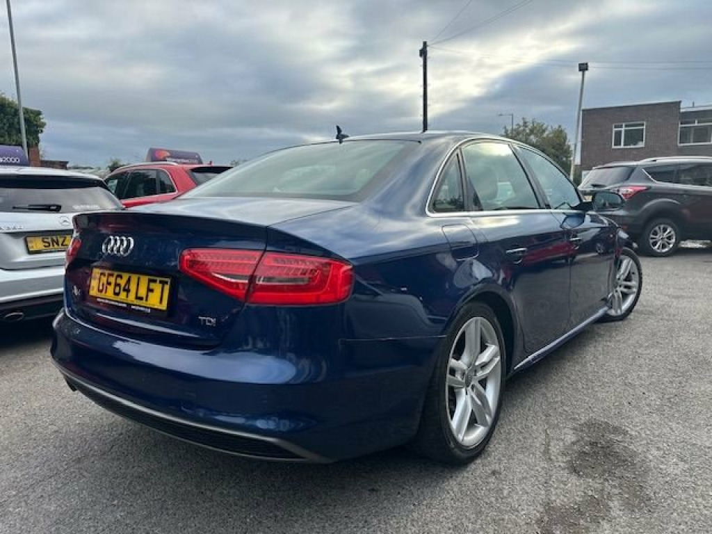 This stunning 2014 64-Reg Audi A4 2.0 TDI S-Line 150bhp Auto has to be seen and driven!!!! Presented in superb special order Scuba Blue Metallic with Black System cloth/leather Sports Trim, it has covered just 89,000 miles with SH and a fantastic specification!!!! Extras include full Factory satellite navigation and Bluetooth phone prep, Technology Package, auto lights and wipers, Xenon headlamps, cruise control, Ellipse aluminium interior inlays, digital climate control, Split folding rear seats (as requested my Mr Lloyd!) USB/Media interface, 18" 7.5J '5-arm Tornado' twin spoke alloy wheels, front and rear parking sensors, privacy glass and fully colour coded S-Line styling and bumpers, one of the nicest most genuine examples you will find with low tax, low insurance and over 60 mpg!!! 12V Power Socket, 12V Power Socket - Luggage Compartment, 12V Power Socket x2, 18in Alloy Wheels - 5-Twin Spoke Design, 6.5in Display Screen, ABS - Anti-Lock Braking System, AUX-IN Socket, Acoustic Windscreen, Airbags - Driver, Airbags - Front Passenger, Airbags - Front Side, Airbags - Head System, Alarm - Thatcham Category 1, Anti Theft Locking Wheel Bolts, Audi Sound System, Auto Opening Boot Lid, Auto-Dimming Rear-View Mirror, Automatic Wipers with Rain Sensor, Bumpers - Front and Rear - S Line Design, Car Jack, Climate Control - Electronic 3-Zone, Cloth Headlining in Black, Colour Drivers Information System - DIS, Concert Radio - MP3/CD Player, Cruise Control, DAB Digital Radio, Diffuser