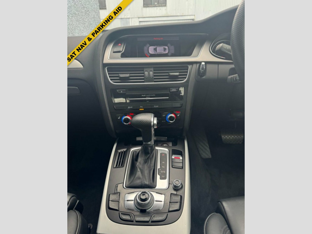 A Very tidy A4 S-Line Quattro automatic in its best colour. Full black heated leather, Sat nav, climate, cruise, Bluetooth, more powerful 177bhp engine. A delight to drive 12V Power Socket, 12V Power Socket - Luggage Compartment, 18in Alloy Wheels - 5-Twin Spoke Design, 6.5in Display Screen, ABS - Anti-Lock Braking System, Acoustic Windscreen, Airbags - Driver, Airbags - Front Passenger, Airbags - Front Side, Airbags - Head System, Alarm - Thatcham Category 1, Anti Theft Locking Wheel Bolts, Audi Sound System, Auto Opening Boot Lid, Auto-Dimming Rear-View Mirror, Automatic Wipers with Rain Sensor, AUX-IN Socket, Bumpers - Front and Rear - S Line Design, Car Jack, Climate Control - Electronic 3-Zone, Cloth Headlining in Black, Colour Drivers Information System - DIS, Concert Radio - MP3/CD Player, Cruise Control, DAB Digital Radio, Diffuser - Platinum Grey, Doo