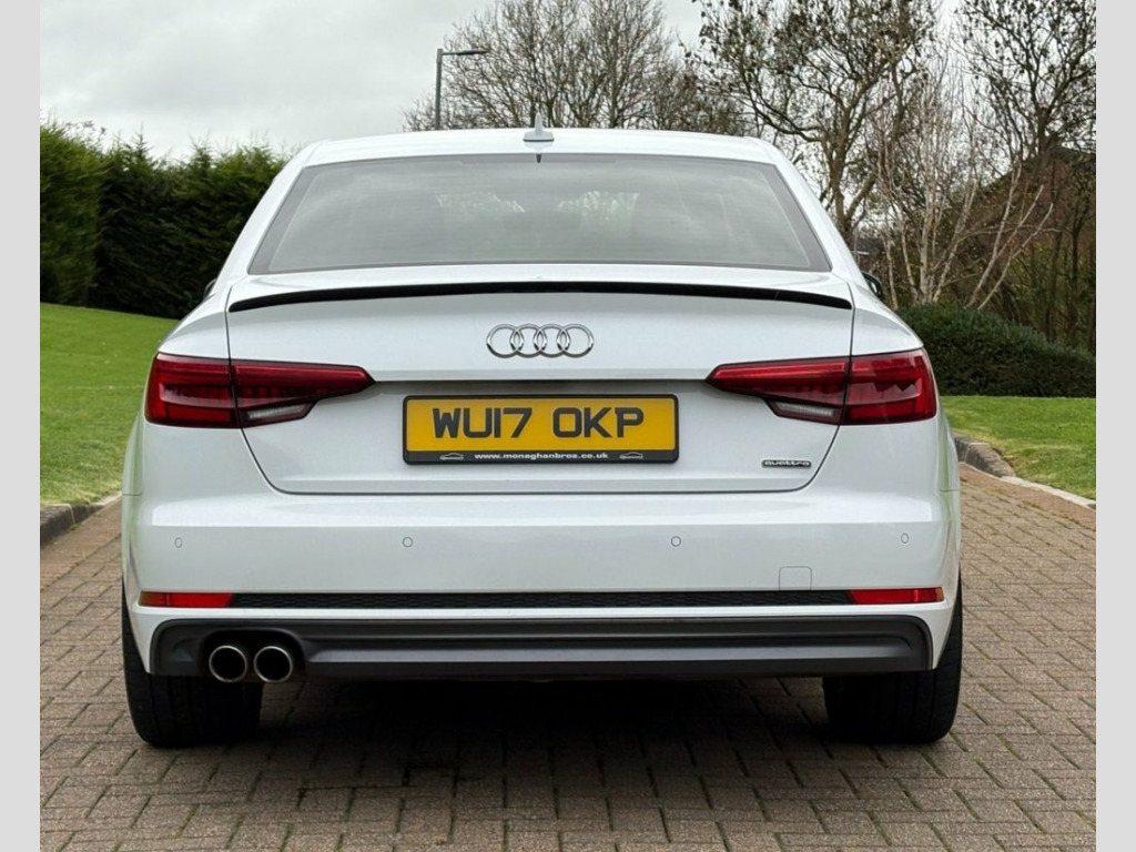 March 2017 Audi A4 2.0TDI 190 Quattro S-Line Auto in Ibis White. Service History & MOT'd to August 2026. Loaded with spec including Half Leather / Suede Interior, Virtual Cockpit / Tech Pack, Flat Bottom Steering Wheel, Privacy Glass, Central Armrest, Navigation System, Bluetooth, DAB Radio, Xenon Daytime Running Lights, Upgraded Alloys etc. FINANCE AVAILABLE AT KEEN RATES!! Viewing by Appointment Only Please. 18in Alloy Wheels - 5-Twin-Spoke Star De, 4-Way Electric Lumbar Support for Front , 6-Airbag System, Anti Theft Locking Wheel Bolts, Anti-Theft Alarm, Audi Connect - 3 Month Trial, Audi Drive Select, Audi Smartphone Interface, Audi Sound System, Auto-Dimming Rear-View Mirror, Bluetooth Interface, Body Coloured Door Mirrors, Chrome-Plated Trims for Exhaust System, Cloth Headlining in Black, Cruise Control with Speed Limiter, DAB Digital Radio, Deluxe 3-Zone Electronic Climate Control, Door Mirrors - Electrically Adjustable a, Drivers Information System - 5in Monochr, Electric Boot Lid Release, Electric Windows - Front and Rear, Electromechanical Parking Brake, Electromechanical Power Steering