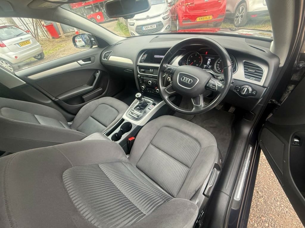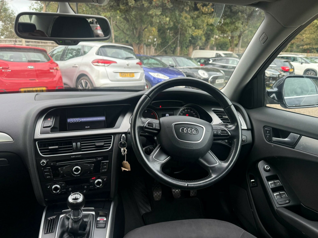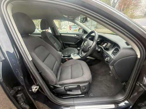 This 2014 Audi A4 TDI SE offers peace of mind with a full 12 months MOT provided on purchase, alongside a clear vehicle history check. This well presented example features a 2.0 litre diesel engine and SE trim, complemented by desirable 17 inch 10 spoke alloy wheels. Inside, you'll find luxurious black Fine Nappa leather upholstery and a sophisticated electronic 3 zone climate control system. For convenience, this Audi A4 also includes a rear acoustic parking system with rear sensors and a Bluetooth interface for mobile telephone preparation.The partial service history indicates that this Audi A4 has been maintained, and the inclusion of features such as the advanced parking assistance and Bluetooth connectivity demonstrate its thoughtful specification. These elements, combined with the comfortable and premium interior, set this particular A4 apart from others, offering a refined driving experience. v power socket, 12v power socket - luggage compartment, 17in alloy wheels - 5-spoke design, abs - anti-lock braking system, aux-in socket, acoustic parking system - rear, airbags - driver, airbags - front passenger, airbags - front side system, airbags - head system, alarm - thatcham category 1, audi sound system, auto opening boot lid, auto-dimming rear-view mirror, automatic wipers with rain sensor, climate control - electronic 3-zone, concert radio, cruise control, door mirrors - electrically adjustable and heated, drivers information system - dis, esp - electronic stability programme, electric windows - front and rear, electromechanical power steering, front centre armrest, front fog lights, headlights - automatic adjustment, isofix child seat preparation front and rear with passenger airbag deactivation switch, inlays - aluminium trigon, mobile telephone preparation - bluetooth interface, remote central locking, space saver spare wheel, split-folding rear seats, steering wheel - 4-spoke leather trimmed/multifunction, steering wheel - height and reach adjustable, steering wheel - multi-function, dab digital radio, 17in alloy wheels - 10-spoke design, cosinus cloth - black