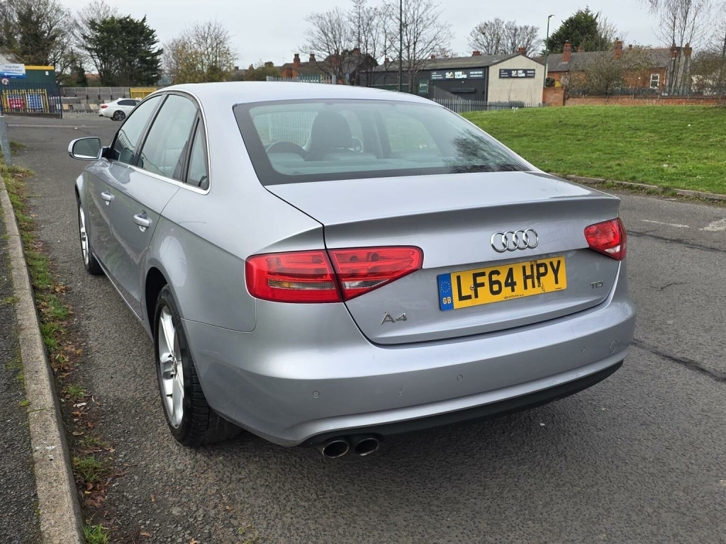 This 2014 Audi A4 2.0 TDI SE Multitronic Euro 5 (s/s) 4dr Saloon is currently available for £3,500 in West Midlands with Diesel engine and Auto Clutch Manual gearbox. For more information or to arrange a viewing, click here to send us an email using form below.