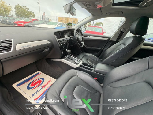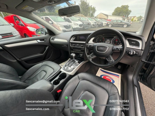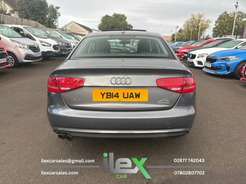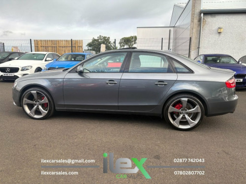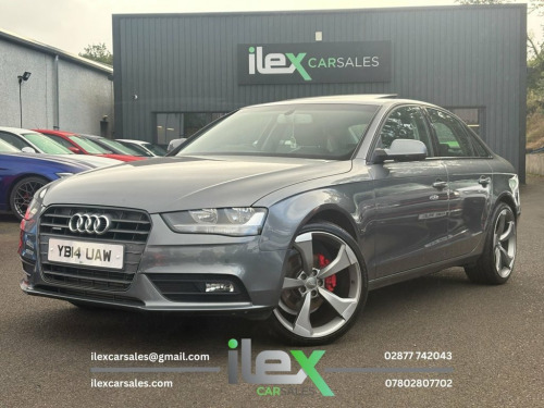 2014 Audi A4 2.0 TDI SE Technik – Black Edition Style | Quattro Auto A sleek and stylish A4 with the desirable Black Edition, quattro grip, and excellent spec. Finished in Grey with just 76k warranted miles, this one is as sharp as it looks. Spec Highlights: 2.0 TDI | 177PS | S Tronic Auto | Quattro AWD Only 76,752 Miles Black Edition Style 19" Alloys £795 optional extra | LED Daytime Running Lights Full MMI Navigation Plus | Bluetooth | DAB Digital Radio 3-Zone Climate Control | Cruise Control | Rear Parking Sensors Audi Sound System with Subwoofer Split-Folding Rear Seats | Practical & Premium Interior Price – £8950 Finance & Warranty Available Part-Exchange Welcome Ilex Car Sales – 416 Ballyquin Road, Dungiven, Derry, BT47 4NQ 028 7774 2043 | 07802 807702 www.ilexcarsales.co.uk – See all our stock 12V Power Socket, 12V Power Socket - Luggage Compartment, 12V Power Socket x2, 18in Alloy Wheels - 10-Spoke Exclusive D, ABS - Anti-Lock Braking System, Acoustic Windscreen, Airbags - Driver, Airbags - Front Passenger, Airbags - Front Side, Airbags - Head System, Alarm - Thatcham Category 1, AMI - Audi Music Interface, Anti Theft Locking Wheel Bolts, Audi Parking System Plus, Audi Sound System, Auto Opening Boot Lid, Auto-Dimming Rear-View Mirror, Automatic Wipers with Rain Sensor, AUX-IN Socket, Car Jack, Climate Control - Electronic 3-Zone, Colour Drivers Information System - DIS, Concert Radio - MP3/CD Player, Cruise Control, DAB Digital Radio, Daytime Running Lights, Display Screen Colou