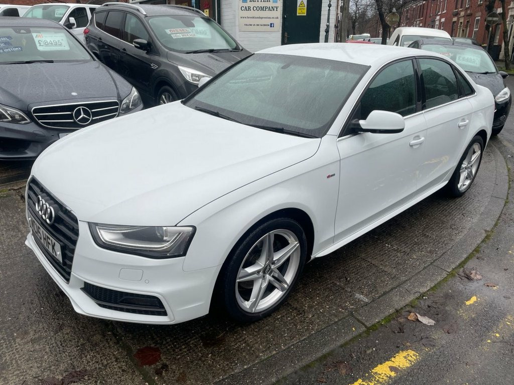 15 AUDI A4 2.0 TDI ULTRA S LINE 4DR SALOON DIESEL MANUAL 163 EURO 6 IN WHITE WITH HALF LEATHER SPORTS TRIM, 74,000 MILES FROM NEW WITH FULL SERVICE HISTORY, LAST SERVICED AT 66,000 MILES, FULL VOSA MOT HISTORY AND MILEAGE CHECKED, 2 FORMER KEEPERS, HPI CHECKED AND CLEARED, THE CAR COMES WITH BOTH KEYS AND ALL RELEVANT PAPERWORK, MOT TILL AUGUST 2026, WILL BE SUPPLIED WITH A INDEPENDENT MULTI POINT INSPECTION, OIL SERVICE, COMPREHENSIVE NATIONWIDE PARTS AND LABOUR WARRANTY AND 12 MONTHS FREE AA BREAKDOWN COVER, NICE CAR AT £8995.00 12V Power Socket, 12V Power Socket - Luggage Compartment, 12V Power Socket x2, 18in Alloy Wheels - 5-Twin Spoke Design, 6.5in Display Screen, ABS - Anti-Lock Braking System, AUX-IN Socket, Acoustic Windscreen, Airbags - Driver, Airbags - Front Passenger, Airbags - Front Side, Airbags - Head System, Alarm - Thatcham Category 1, Anti Theft Locking Wheel Bolts, Audi Sound System, Auto Opening Boot Lid, Auto-Dimming Rear-View Mirror, Automatic Wipers with Rain Sensor, Bumpers - Front and Rear - S Line Design, Car Jack, Climate Control - Electronic 3-Zone, Cloth Headlining in Black, Colour Drivers Information System - DIS, Concert Radio - MP3/CD Player, Cruise Control, DAB Digital Radio, Diffuser