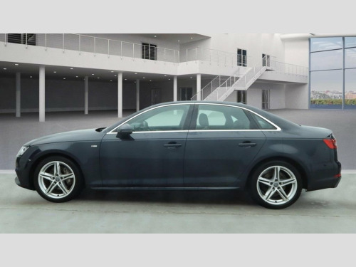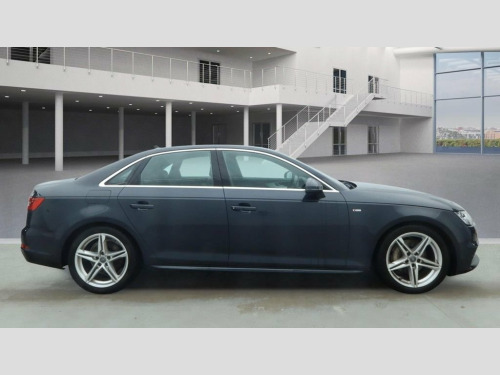 We are delighted to offer this lovely 1 owner from new Audi A4 2.0 TDI ultra S Line presented in lovely metallic blue with contrasting black half leather S Line interior and supported by 2 keys and fantastic service history through to 2025. This is a really clean and tidy example presented in lovely condition throughout. the car drives really well indeed with the excellent 2.0 TDI engine being silky smooth, powerful and efficient, benefitting from EURO 6 ULEZ compliance. The car has just 1 owner from brand new and is complemented by a really good specification inside a superb interior with excellent build quality. We've also got both keys present and the car will be supplied with a fresh service on order alongside 12 months MOT, offering maximum peace of mind for the new owner who is going to be delighted with this superb A4. Specification includes: sat nav, DAB radio, bluetooth with audio streaming, S Line half leather interior, Audi drive select, parking sensors, LED daytime running lights, cruise control, auto lights, 18 inch alloy wheels and more! Sat Nav, DAB Radio, Bluetooth With Audio Streaming, Half Leather S Line Interior, Climate Control, Cruise Control, Audi Drive Select, Parking System Plus, LED Headlights with LED Rear Lights and , 18in Alloy Wheels - 5-Twin-Spoke Star De