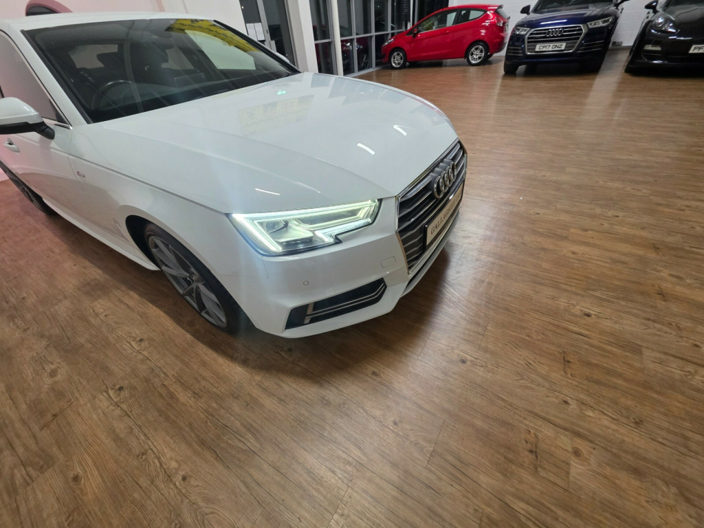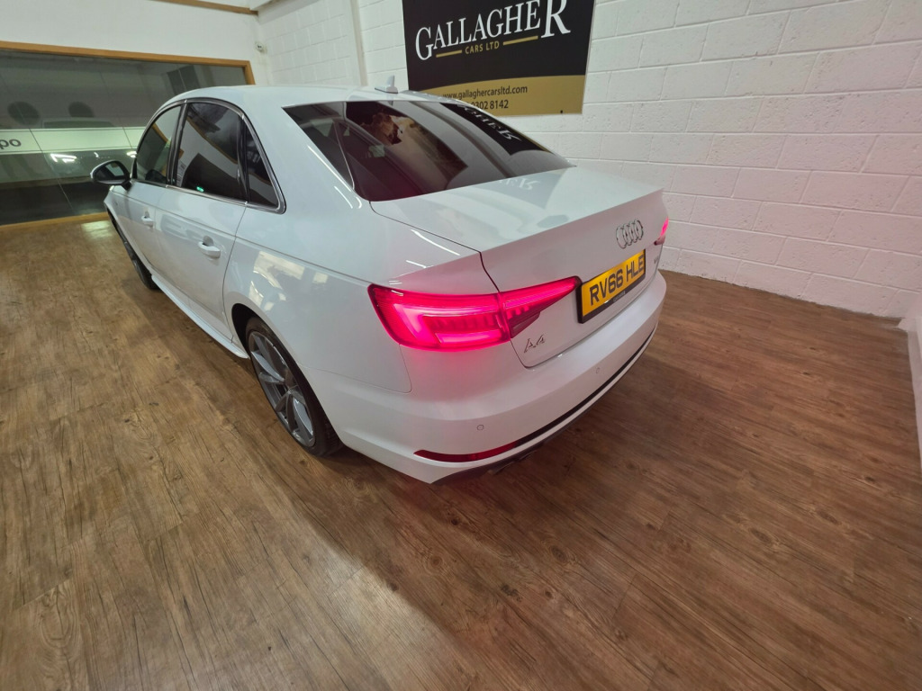 2016 Audi A4 2.0 tdi Sline97k warranted miles with full service history and has just been serviced including a new timing belt kit, fully inspected and professionally valeted by ourselves. Stunning car presented in Glacier White Mettalic bodywork with Sline embossed half black heated leather interior with the Sline signature black roof cloth.Original Audi alloys have just been refurbished by the renowned Rimfix. Real nice genuine one owner car from new which has obviously been very well looked after, you will look far and wide yo find one as nice.Motd to Sept 262x remote keys V5 present Audi Bookpack Finance Available from a wide panel of lenders with industry leading rates with zero deposit options. 3 month/3000 mile inhouse warranty with the option to extend up 18 months with the UK's leading warranty company Autoguard. Viewings by appointment please, out of business hours viewings are available in our bright indoor showroom located in Campsie Ind Est Eglinton BT47 3XX. Contact Brian 07803 028 142 £10795 ono in alloy wheels - 5-twin-spoke star design, anti theft locking wheel bolts, body coloured door mirrors, chrome-plated trims for exhaust system, door mirrors - electrically adjustable and heated with built-in led indicators, electric windows - front and rear, high gloss package, model and engine technology badges at rear, radiator grille - twilight grey matt with inlays in chrome, rear diffuser in twilight grey matt, rear grille - black grained, s line badges on front wings, s line front and rear bumpers and side skirts, side air inlet grille in titan black matt with chrome inlays in unique s line design, space saver spare wheel, windscreen with acoustic glazing, 4-way electric lumbar support for front seats, auto-dimming rear-view mirror, cloth headlining in black, deluxe 3-zone electronic climate control, electric boot lid release, front and rear floor mats, gear lever knob in black perforated leather, illuminated door sill trims with s logo, inlays - matt brushed aluminium, keyless go, led interior light package, luggage compartment mat, manual height adjustment for front seats, non-smoking package, pedals and footrest - stainless steel, s line 3-spoke leather multi-function sport steering wheel - grips in perforated leather, split-folding rear seat bench in 3 parts - 40-20-40 with rear centre armrest, sun visors - with vanity mirror, tool kit and car jack, 6-airbag system, anti-theft alarm, esc - electronic stabilisation control inc abs - asr and edl, electromechanical parking brake, first aid kit and warning triangle, isofix child seat mounting and top tether, multi collision brake assist, parking system plus, pop-up bonnet for pedestrian protection, pre-sense city, remote central locking, seat belt monitoring, variable restraint system, audi connect - 3 month trial, audi smartphone interface, audi sound system, bluetooth interface, dab digital radio, drivers information system - 5in monochrome display, mmi navigation - sd card based, towbar preparation, audi drive select, cruise control with speed limiter, electromechanical power steering, sport suspension, tyre pressure warning light, led headlights with led rear lights and dynamic rear indicators, light and rain sensor