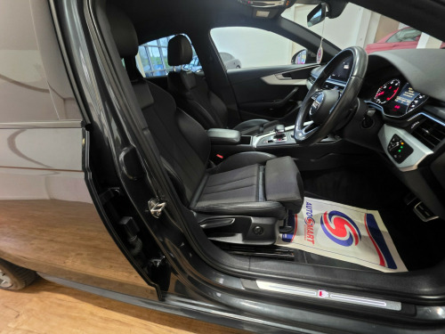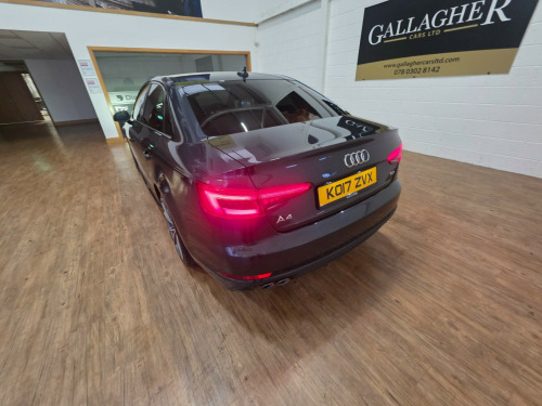 2017 Audi A4 2.0 Tdi S Line 190 Auto122k warranted miles with Service History and comes fully serviced including a timing belt kit, fully inspected and professionally valeted by ourselves.Manhattan Grey Mettalic bodywork with sline embossed half leather interior with the signature black roof cloth. A real genuine 2 owner car from new who obviously cherished it. Drives beautifully very responsive and smooth up and down the gears with loads of power and delivering excellent mpg.2 x remote keysV5 presentMotd to Nov 263 month/3000 mile inhouse warranty with the option to extend up 15 months with the UK's leading warranty company Autoguard.Viewings by appointment please, out of business hours viewings are also available at the weekend or evenings in our bright indoor showroom located in Campsie Ind Est Eglinton BT47 3XXContact Brian 07803 028 142£9995 in alloy wheels - 5-twin-spoke star design, anti theft locking wheel bolts, body coloured door mirrors, chrome-plated trims for exhaust system, door handles - body coloured, door mirrors - electrically adjustable and heated with built-in led indicators, electric windows - front and rear, high gloss package, radiator grille - twilight grey matt with inlays in chrome, rear diffuser in twilight grey matt, rear grille - black grained, s line badges on front wings, s line front and rear bumpers and side skirts, side air inlet grille in titan black matt with chrome inlays in unique s line design, space saver spare wheel, windscreen with acoustic glazing, 4-way electric lumbar support, auto-dimming rear-view mirror, cloth headlining in black, deluxe 3-zone electronic climate control, electric boot lid release, front centre armrest, gear lever knob in black perforated leather, heated front seats, high multifunction s line 3-spoke leather trimmed sport steering wheel with grips in perforated leather, illuminated door sill trims with s logo, inlays - matt brushed aluminium, keyless go, led interior light package, manual height adjustment for front seats, pedals and footrest - stainless steel, split-folding rear seat bench in 3 parts - 40-20-40 with rear centre armrest, sun visors - with vanity mirror, tool kit and car jack, 6-airbag system, anti-theft alarm, esc - electronic stabilisation control inc abs - asr and edl, first aid kit and warning triangle, isofix child seat mounting and top tether, multi collision brake assist, parking system plus, pop-up bonnet for pedestrian protection, pre-sense city, remote central locking, seat belt monitoring, audi connect - 3 month trial, audi connect safety and service - e-call, audi smartphone interface, audi sound system, bluetooth interface, cd drive, dab digital radio, driver information system - 7in colour display, mmi navigation - sd card based, towbar preparation, two usb charging ports, audi drive select, cruise control system with freewheeling capability and speed limiter, electromechanical power steering, sport suspension, tyre pressure warning light, voice control, led headlights with led rear lights and dynamic rear indicators, light and rain sensor