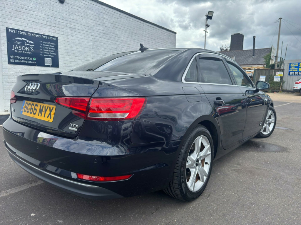 2016 AUDI A4, 2.0 DIESEL MANUAL, 4 DOORS SALOON, ULEZ COMPLAINTS, COMES WITH NEW MOT AND NEW SERVCE, CAM BELT AND WATER PUMP REPLACED AT 84K, REMOTE CENTRAL LOCKING, 2 REMOTE KEYS, SATNAV, DAB RADIO, BLUETOOTH CONNECTIVITY, REAR PARKING SENSORS, With only one former keeper, this 2016 Audi A4 2.0L TDI SE is a great example of a well-maintained vehicle. The A4, known for its blend of style and practicality, comes in the SE trim, offering a comfortable and refined driving experience. This particular model boasts several desirable features, including the Parking Assistance Pack with a 360-degree camera and front sensors, making parking a breeze. The Advanced Key with Electric Hands-Free Boot Opening System adds a touch of convenience with keyless entry. Privacy Glass and Front Acoustic Glazing enhance the driving experience, while the High-Beam Assist headlights improve visibility on night drives. The inclusion of MMI Navigation ensures you'll always find your way.This A4 stands out with its impressive fuel economy of 74 mpg, meaning fewer trips to the petrol station and more money in your pocket. In addition, it falls into a low insurance group, offering peace of mind with potentially lower premiums. The low CO2 emissions also mean that this vehicle is kinder to the environment and may benefit from lower road tax costs compared to similar vehicles. v power socket, 17in alloy wheels - 10-spoke crystal design, abs - anti-lock braking system, asr - anti slip regulation, aux-in socket, acoustic windscreen, air inlets - titan black with two horizontal inlays in chrome, airbags - curtain, airbags - driver, airbags - front passenger, airbags - front side, anti theft locking wheel bolts, anti-theft alarm, audi drive select, auto-dimming rear-view mirror, automatic wipers with rain sensor, b-pillar trims and triangular rear door trim in high-gloss black, body coloured door mirrors, cd player, cloth headlining, cruise control with speed limiter, cupholders, dab digital radio, dis - drivers information system with display screen monochrome tft 5in, deluxe 3-zone climate control, display screen - 7in mmi colour display, door handles - chrome inserts, door mirrors - electrically adjustable and heated with built-in led indicators, door sill trims with aluminium inlay, edl - electronic differential lock, esc - electronic stabilisation control, electric boot lid release, electric windows - front and rear, electromechanical parking brake, electromechanical power steering, emergency braking function, exhaust tailpipe - chrome plated, first aid kit, front centre armrest, front passenger airbag deactivation switch, front and rear floor mats, front and rear roof module, fuel computer, glovebox - illuminated, head restraints - front adjustable, headlights - automatic adjustment, headlights - light sensor, headlights - xenon, heat insulating glass - windscreen and side windows, high gloss package, isofix child seat mounting for front passenger with airbag deactivation, isofix child seat preparation for rear seats with top tether, inlays - aluminium ellipse - silver, interior lighting, keyless go, led daytime running lights, led rear fog lights and licence plate led illumination, luggage compartment - lighting, luggage compartment mat, mmi controller with integrated joystick function, mmi radio plus with smartphone interface, manual height adjustment for front seats, mobile telephone preparation - bluetooth interface, model and engine technology badges at rear, multi collision brake assist, non-smoking package, parking sensors - rear, passive door warning lights, pop-up bonnet for pedestrian protection, pre-sense city, preparation for mmi navigation, radiator grille - titan black with inlays in chrome, rear centre armrest, rear diffuser clip in chrome, rear diffuser in titan black matt, remote boot release, remote central locking, roof frame and window trims in aluminium, sdxc card reader, seat belt monitoring, seats - split folding rear - 40-20-40, space saver spare wheel, speakers x8, sport suspension, steering wheel - 3-spoke leather, steering wheel - height and reach adjustable, steering wheel - multi-function, sun visors - with vanity mirror, tailgate lighting, tool kit and car jack, towbar preparation, tyre pressure warning light, usb connection x2, variable restraint system, voice control, warning triangle, audi sound system, advanced key with electric hands-free boot opening system, headlights - high-beam assist, parking assistance pack, privacy glass and front acoustic glazing, mmi navigation