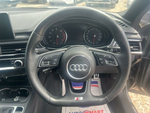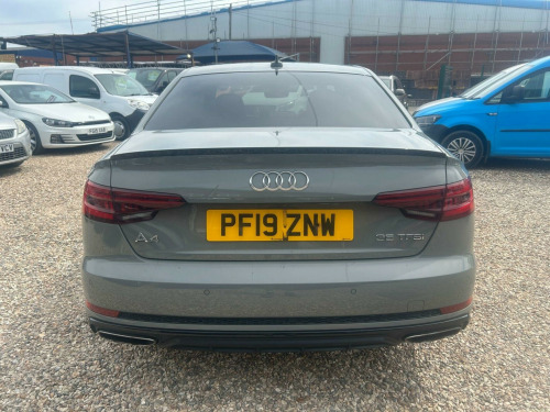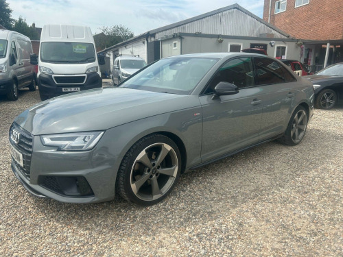 With a full service history, this 2019 Audi A4 TFSI Black Edition is a well-maintained example of a stylish and sporty saloon. The Black Edition trim adds a touch of exclusivity to this A4, which is powered by a responsive 2.0L petrol engine and adheres to Euro 6 emission standards. You'll benefit from 12 months MOT provided on purchase and 3 months warranty for added peace of mind.This A4 boasts several desirable features, including LED headlights with dynamic indicators, ensuring excellent visibility and a modern look, complemented by 19in alloy wheels with a distinctive titanium finish. The convenience of folding, auto-dimming door mirrors with memory function adds to the premium feel, along with the Audi Entertainment Mobile and Technology Pack, which includes Bluetooth connectivity & wide screen navigation. The low insurance group and low CO2 emissions mean that this vehicle could be more economical to own than other similar vehicles.. 2 x USB Charging Ports and 1 x AUX-IN, 4-Way Electric Lumbar Support, 6-Airbag System, ABS - Anti-Lock Braking System, Anti Theft Locking Wheel Bolts, Anti-Theft Alarm, Audi Connect Safety and Service - e-call, Audi Drive Select, Audi Sound System, Auto-Dimming Rear-View Mirror, Bluetooth Interface, Chrome-Plated Trims for Exhaust System, Cloth Headlining in Black, Cruise Control with Speed Limiter, DAB Digital Radio, Deluxe 3-Zone Electronic Climate Control, Door Mirrors - Electrically Adjustable and Heated with Built-in LED Indicators, Door Mirrors - Electrically Folding, Door Mirrors - High-Gloss Black, Driver Information System - 7in Colour Display, ESC - Electronic Stabilisation Control inc ABS - ASR and EDL, Electric Boot Lid Release, Electric Windows - Front and Rear, Electromechanical Parking Brake, Electromechanical Power Steering, First Aid Kit and Warning Triangle, Flat Bottomed 3-Spoke Leather High Multi-Function Steering Wheel, Front Centre Armrest, Front and Rear Air Intakes in Titanium Black, Front and Rear Floor Mats, Gear Lever Knob in Black Perforated Leather, Heated Front Seats, High Gloss Package, High-Beam Assist, ISOFIX Child Seat Mounting and Top Tether, Illuminated Door Sill Trims with S Logo, Inlays - Piano Finish - Black, Interior Lighting, Keyless Go, LED Headlights with LED Rear Lights and Dynamic Rear Indicators, Light and Rain Sensor, Luggage Compartment Mat, MMI Navigation - SD Card Based, MMI Radio Plus with Smartphone Interface, Manual Height Adjustment for Front Seats, Multi Collision Brake Assist, Non-Smoking Package, Parking System Plus, Pedals and Footrest - Stainless Steel, Pop-Up Bonnet for Pedestrian Protection, Pre-Sense City, Privacy Glass and Front Acoustic Glazing, Radiator Grille and Frame in Titanium Black, Rear Diffuser in Twilight Grey Matt, Rear Grille - Black Grained, S Line Badges on Front Wings, S Style Rear Spoiler in High Gloss Black, S line Front and Rear Bumpers and Side Skirts, Seat Belt Monitoring, Split-Folding Rear Seat Bench in 3 Parts - 40-20-40 with Rear Centre Armrest, Sport Suspension, Sun Visors - with Vanity Mirror, Tailpipes in Chrome, Tool Kit and Car Jack, Towbar Preparation, Tyre Pressure Warning Light, Tyre Repair Kit, Variable Restraint System, Window Surrounds in Titanium Black, Windscreen with Acoustic Glazing, Technology Pack, Audi Entertainment Mobile, 19in Alloy Wheels - 5-V Spoke Design in Matt Titanium Look - Diamond Cut Finish, Door Mirrors - Folding with Auto-Dimming and Memory Function, Matrix LED Headlights with LED Rear Lights and Dynamic Front and Rear Indicators, Alcantara-Leather - Sport Seats - S Embossed Logo - Black. Full service history