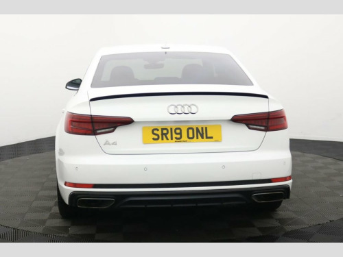 Henson Car Store presents the AUDI A4 2.0 TFSI 35 Black Edition Saloon 4dr Petrol Manual Euro 6 (s/s) finished in White, this car comes with service history. This 2019 Audi A4 TFSI Black Edition offers a compelling blend of style and efficiency. As a Euro 6 compliant vehicle, it features a 2.0 litre petrol engine, ensuring a smooth and responsive driving experience. The Black Edition trim level adds a distinctive aesthetic, making this A4 stand out. This Audi A4 is particularly appealing due to its low insurance group rating, which can help to keep your running costs down. Furthermore, its low CO2 emissions indicate a more environmentally conscious choice compared to many other vehicles in its class. These factors combined make this A4 a sensible and attractive option for discerning drivers. 19in Alloy Wheels - 5-Arm Rotor Matt Tit, 2 x USB Charging Ports and 1 x AUX-IN, 4-Way Electric Lumbar Support, 6-Airbag System, ABS - Anti-Lock Braking System, Anti Theft Locking Wheel Bolts, Anti-Theft Alarm, Audi Connect Safety and Service - e-call, Audi Drive Select, Audi Sound System, Auto-Dimming Rear-View Mirror, Bluetooth Interface, Chrome-Plated Trims for Exhaust System, Cloth Headlining in Black, Cruise Control with Speed Limiter, DAB Digital Radio, Deluxe 3-Zone Electronic Climate Control, Door Mirrors - Electrically Adjustable a, Door Mirrors - Electrically Folding, Door Mirrors - High-Gloss Black, Driver Information System - 7in Colour D, ESC - Electronic Stabilisation Control i