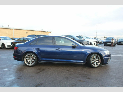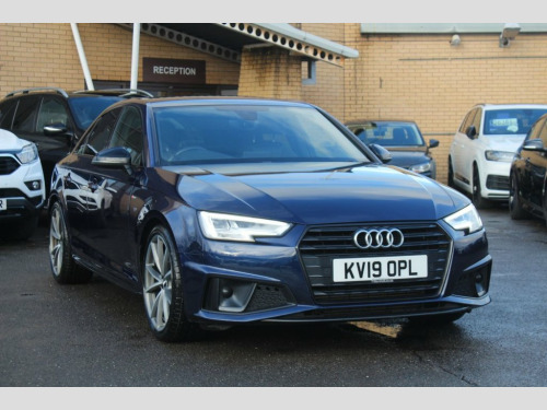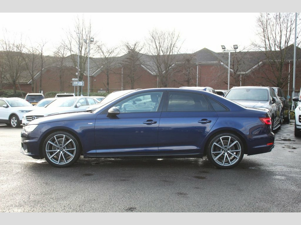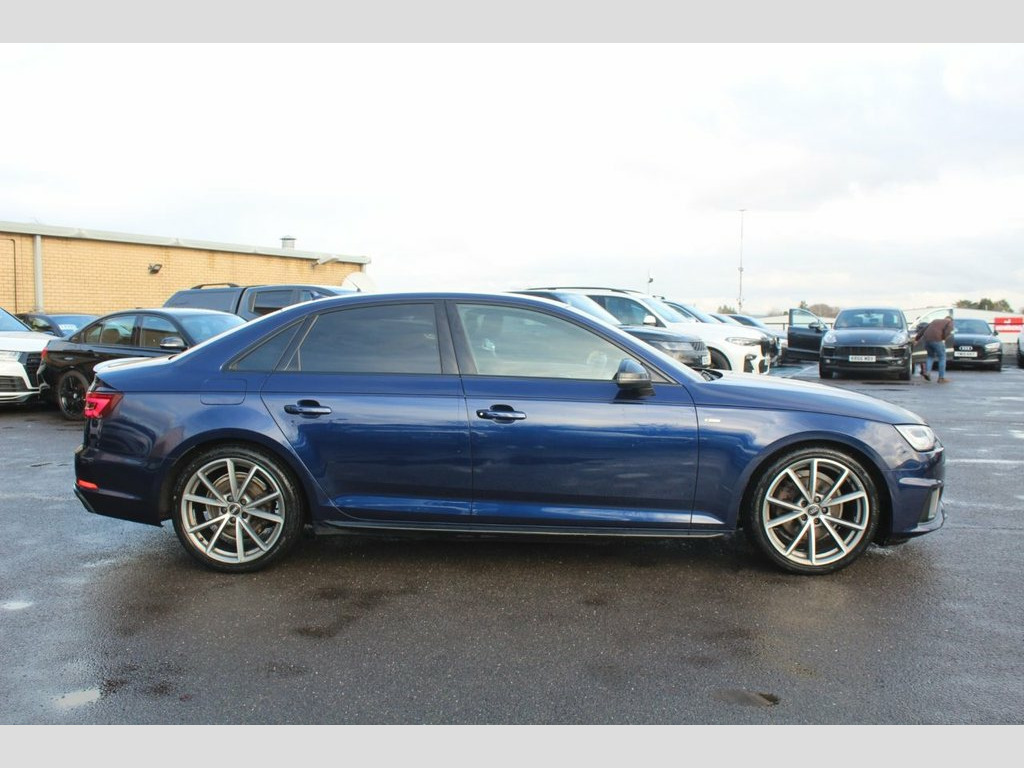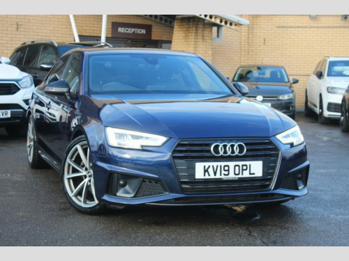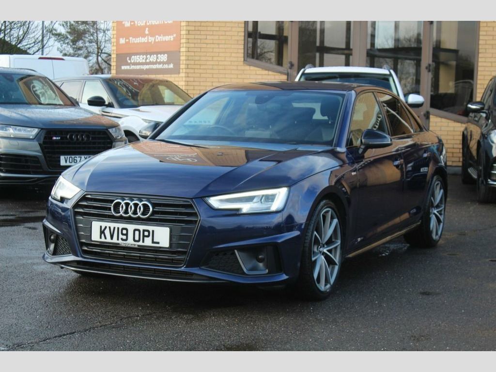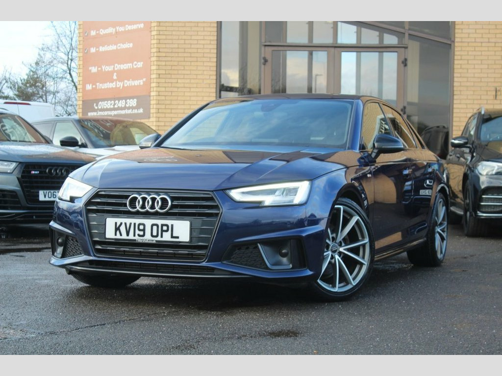 IM car supermarket is pleased to offer this very well Audi A4 2.0 TFSI 35 Black Edition S Tronic Euro 6 (s/s) 4dr in blue colour with only 89,287 miles on the clock. The car comes with 3 months warranty. MOT valid until 25 November 2026. service history info; 2022, 2024, and last service is done 2025 at 89.2k miles. A high specification includes Sat Nav, Parking Sensors, Climate Control, Smart Phone Integration, Phone and Media BT Connection. Discover this 2019 Audi A4 TFSI Black Edition, a sophisticated saloon that combines style with practicality. This Euro 6 compliant model boasts a 2.0 litre petrol engine and is presented in the desirable Black Edition trim. You can drive with confidence thanks to the Parking System Plus, which includes front and rear sensors, and enjoy a comfortable cabin environment with Deluxe 3 Zone Electronic Climate Control. Connectivity is seamless with the integrated Bluetooth interface, while the advanced LED headlights, complete with dynamic rear indicators and LED rear lights, ensure excellent visibility. The Light and Rain Sensor automatically manages the headlights, adding to the effortless driving experience. This Audi A4 stands out with its low CO2 emissions, indicating a more environmentally conscious choice compared to many other vehicles in its class. Furthermore, its placement in a low insurance group makes it an economical option for many drivers. These factors, combined with its impressive array of features, highlight how this pa 19in Alloy Wheels - 5-Arm Rotor Matt Tit, 2 x USB Charging Ports and 1 x AUX-IN, 4-Way Electric Lumbar Support, 6-Airbag System, ABS - Anti-Lock Braking System, Anti Theft Locking Wheel Bolts, Anti-Theft Alarm, Audi Connect Safety and Service - e-call, Audi Drive Select, Audi Sound System, Auto-Dimming Rear-View Mirror, Bluetooth Interface, Chrome-Plated Trims for Exhaust System, Cloth Headlining in Black, Cruise Control System with Freewheeling , DAB Digital Radio, Deluxe 3-Zone Electronic Climate Control, Door Mirrors - Electrically Adjustable a, Door Mirrors - Electrically Folding, Door Mirrors - High-Gloss Black, Driver Information System - 7in Colour D, ESC - Electronic Stabilisation Co