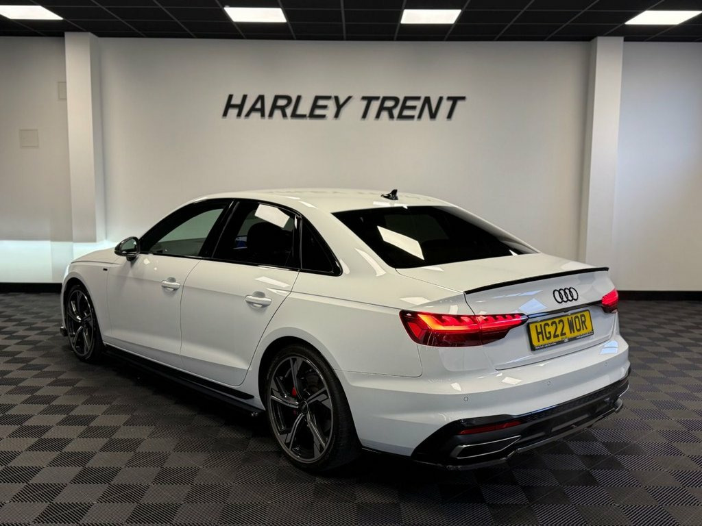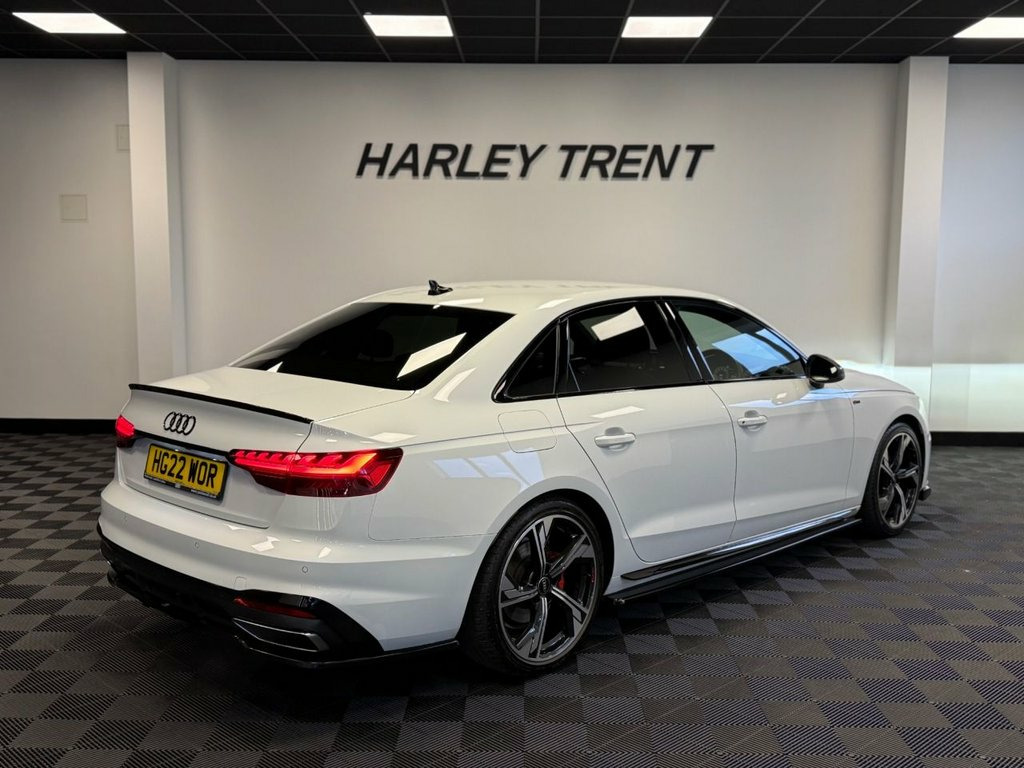 Apply for finance anytime via our website: www.harleytrent.com Finance available from just 8.9% APR, Harley Trent are delighted to offer this striking 2022 Audi A4 2.0 TFSI 35 Black Edition Saloon, finished in a sleek Black Edition specification and paired with the S Tronic automatic gearbox. This example has covered just 40,516 miles and benefits from a full Audi service history. It also boasts an excellent specification, including: Maxton Design body kit, Audi Virtual Cockpit, Heated front seats, Half leather & Alcantara upholstery, Apple CarPlay & Android Auto, Satellite navigation, Rear view camera, Parking System Plus, LED headlights, Flat-bottom steering wheel, Heated & power-folding mirrors, Audi Drive Select, Dual-zone climate control, Auto hill hold …and much more. The vehicle is supplied with 6 months warranty for added peace of mind. Viewings strictly by appointment only. Contact us on 01202159765. Leather-Alcantara - Black, Glacier White, 19in Alloy Wheels - 5-Arm Flag Design - , 2 USB Charging Ports, 4-Way Electric Lumbar Support, 6-Airbag System, 8 Passive Loudspeakers, Anti Theft Locking Wheel Bolts, Anti-Theft Alarm, Audi Beam, Audi Connect Infotainment Services (36 M, Audi Connect with Amazon Alexa Integrati, Audi Drive Select, Audi Rings in Black and Black Model Badg, Audi Smartphone Interface, Audi Virtual Cockpit, Auto-Dimming Rear-View Mirror, Automatic Start-Stop with Coasting Funct, Bluetooth Interface, Body Coloured Side Sill Trims, Cloth Headlining in Black, Contrast Stitching on Seats - Steering W, Cruise Control System with Speed Limiter, DAB Digital Radio Reception, De