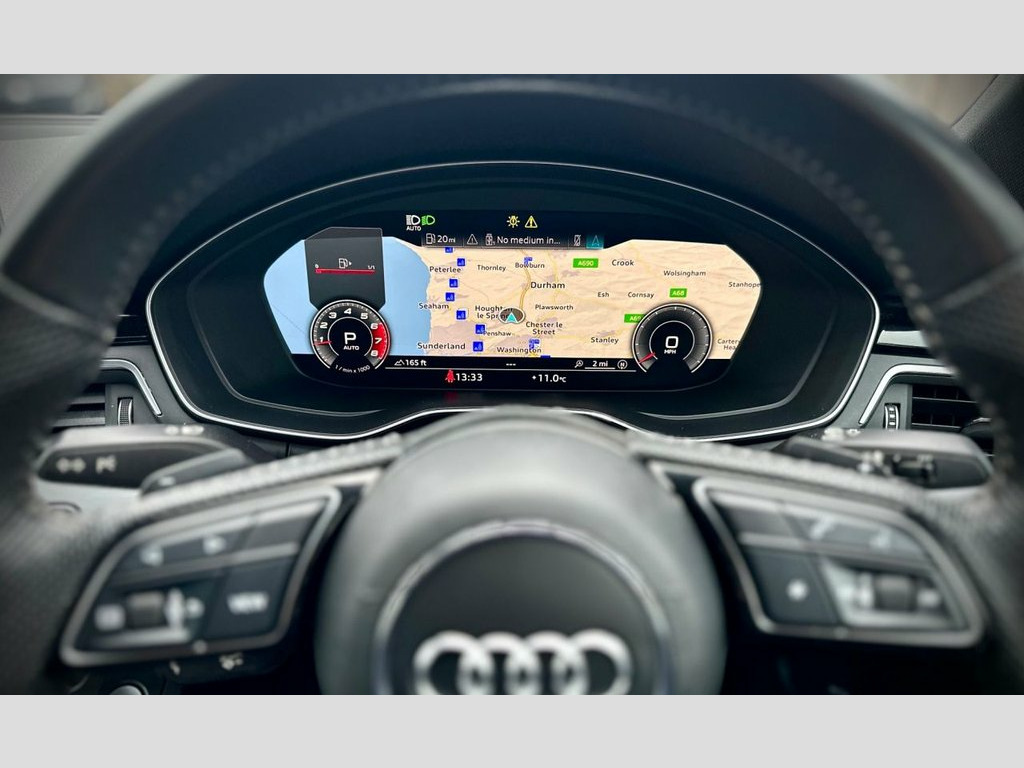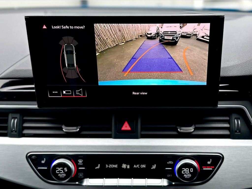 This 2020 Audi A4 TFSI S line offers a superb blend of style and technology, making it an excellent choice for discerning drivers. Powered by a responsive 2.0 litre petrol engine and meeting Euro 6 emissions standards, this S line variant is equipped with a host of desirable features. Enjoy ultimate comfort with Deluxe 3-Zone Electronic Climate Control and Heated Front Seats. Navigating tight spaces is made easier with the Rear View Camera and Parking System Plus, which includes front and rear sensors. Stay connected and entertained on the go thanks to the Audi Smartphone Interface, compatible with both Android Auto and Apple CarPlay. This Audi A4 stands out with its low insurance group, offering potential savings for owners. The combination of its advanced climate control, parking assistance systems, and smartphone integration highlights how this vehicle provides a more refined and convenient driving experience compared to others in its class. Its Euro 6 compliant engine also ensures it meets current environmental standards. Also includes the Audi Virtual Cockpit; a fully digital instrument cluster that replaces traditional analog gauges with a customizable 12.3-inch high-resolution TFT screen. It displays a wide range of vehicle information, including speed, engine revs, navigation, media controls, and driver assistance alerts. Drivers can personalise the display, choosing from preset modes or selecting specific data to view. Only 2 owners from new, with the most recent ow Turbo Blue