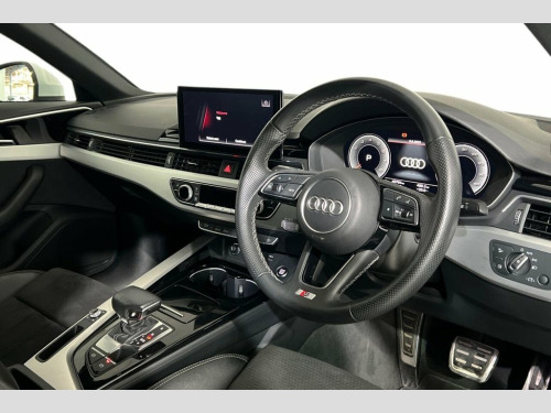 This 2022 Audi A4 TFSI S line offers exceptional provenance, having been owned by only one careful owner and boasting an MOT valid until August 2026. This Euro 6 compliant 2.0 litre petrol model presents a clear vehicle history, ensuring peace of mind for its next owner. Inside, you'll find a host of desirable features designed for comfort and convenience, including Deluxe 3-Zone Electronic Climate Control, Parking System Plus with front and rear sensors, and a helpful rear-view camera. Connectivity is seamless thanks to the Bluetooth interface and the Audi Smartphone Interface, which supports both Android Auto and Apple CarPlay. The Audi A4 TFSI S line is also notable for its low insurance group, making it an economical choice for many drivers. These highlights, combined with its single ownership and comprehensive MOT, demonstrate how this particular A4 stands out from others in its class, offering a well maintained and feature rich driving experience. 19in Alloy Wheels - 8.5J 5-Arm Torsio De, 2 USB Charging Ports, 3-spoke Leather High Multi-function Spor, 4-Way Electric Lumbar Support, 6-Airbag System, 8 Passive Loudspeakers, Anti Theft Locking Wheel Bolts, Anti-Theft Alarm, Audi Connect Infotainment Services (36 M, Audi Connect with Amazon Alexa Integrati, Audi Drive Select, Audi Smartphone Interface, Audi Virtual Cockpit, Auto-Dimming Rear-View Mirror, Automatic Start-Stop with Coasting Funct, Bluetooth Interface, Body Coloured Door Mirrors, Body Coloured Side Sill Trims, Cloth Headlining in Black, Contrast Stitching on Seats - Steering W, Cruise Control System with Speed Limiter, DAB Digital Radio Reception, Deluxe 3-Zone Electronic Cl