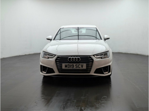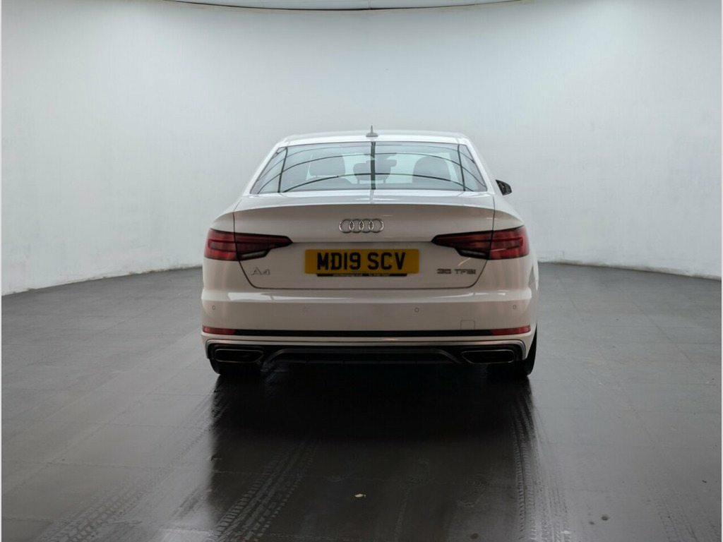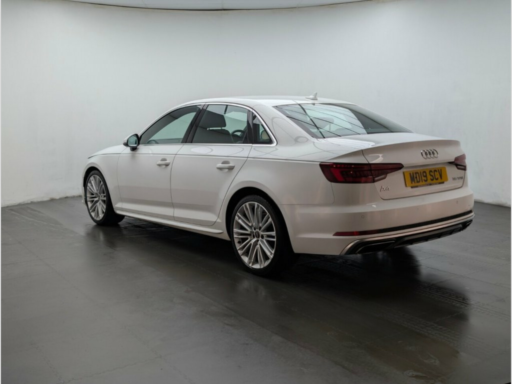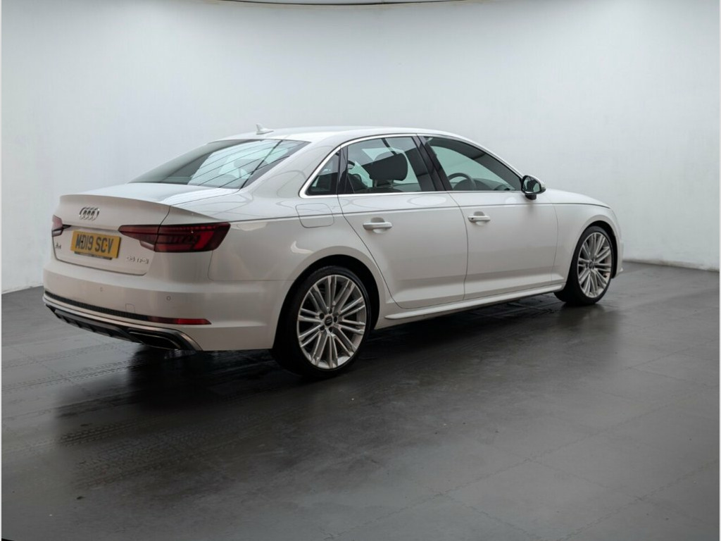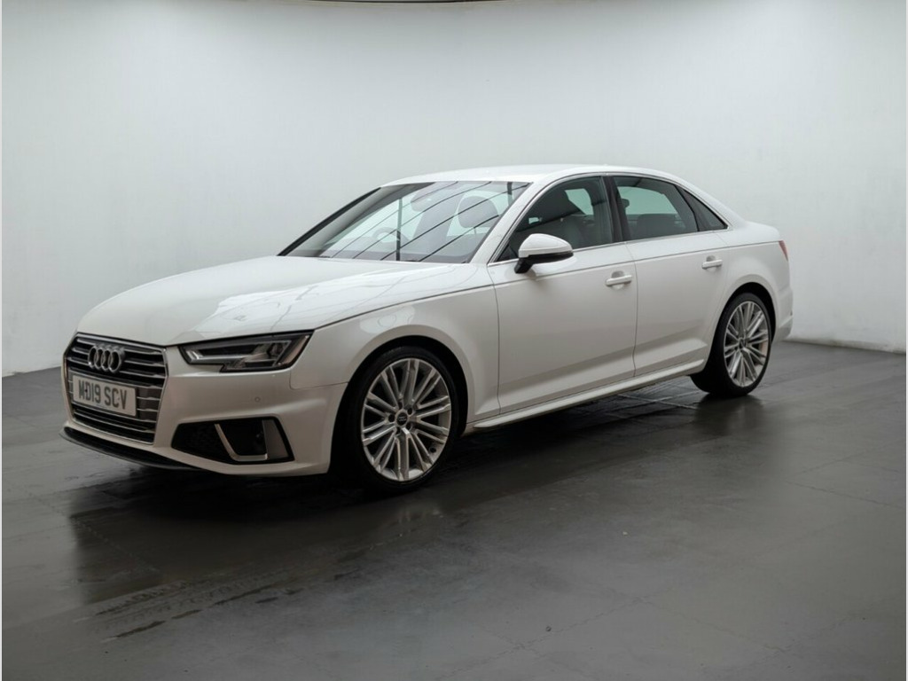 19" alloys, Audi Drive Select, Bluetooth, Parking system plus and Navigation. Last service done at 34213 miles on 10/04/2024. This 2019 Audi A4 TFSI S line presents an exceptional ownership proposition with its remarkably low mileage of just 35,100 miles, significantly below average for its age. This Euro 6 compliant model boasts a 2.0 litre petrol engine and comes with an MOT valid until October 2026, offering peace of mind for the foreseeable future. Furthermore, a clear vehicle history check confirms its sound provenance, making this S line trim A4 a well maintained and desirable choice. The Audi A4 TFSI S line is designed to offer an enhanced driving experience, and this particular example stands out due to its low CO2 emissions and its placement within a low insurance group. These factors indicate that running costs for this vehicle are likely to be more economical compared to many other similar cars on the market, making it a sensible and appealing option for discerning buyers. 19in Alloy Wheels - 10-V Spoke Design, 2 x USB Charging Ports and 1 x AUX-IN, 4-Way Electric Lumbar Support, 6-Airbag System, ABS - Anti-Lock Braking System, Anti Theft Locking Wheel Bolts, Anti-Theft Alarm, Audi Connect Safety and Service - e-call, Audi Drive Select, Audi Sound System, Auto-Dimming Rear-View Mirror, Bluetooth Interface, Body Coloured Door Mirrors, Chrome-Plated Trims for Exhaust System, Cloth Headlining in Black, Contrast Stitching on Steering Wheel and, Cruise Control System with Freewheeling , DAB Digital Radio, Deluxe 3-Zone Electronic Climate Control, Door Mirrors - Electrically Adjustable a, Door Mirrors - Electrically Folding, Driver Information System - 7in Colour D,