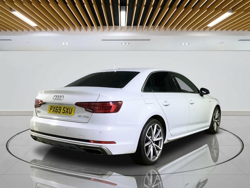 Why This Audi A4 TFSI S line Wins? This 2019 Audi A4 TFSI S line presents an exceptional opportunity with remarkably low mileage for its age, having covered just 40,412 miles. This Euro 6 compliant 2.0 litre petrol model delivers a perfect balance of performance and efficiency, accelerating from 0–62 mph in a swift 7.3 seconds. The S line trim enhances its sporty character with stylish design elements and premium features, including LED headlights with dynamic rear indicators for striking road presence. Convenience is at the forefront with a rear view camera, front and rear parking sensors, and the Audi Smartphone Interface, which supports Android Auto and Apple CarPlay for seamless connectivity. Your Peace of Mind? - Clear vehicle history check - Optional 3–36-month extendable warranties - Free 12-month AA roadside assistance - Last Serviced, October 2025 | MOT until October 2026 - 5 Day Drive-Away Insurance - No hidden or extra costs, like admin fees Autotrader's 2024 Insights: Top 3 A4 Buyer Priorities: - Premium interior quality - Smooth, efficient performance - Advanced driver technology - This Audi A4 meets all three, offering a refined and connected driving experience with a balance of comfort, technology, and performance rarely matched in its class. Stress-Free Next Steps: - Free Part Exchange Valuation - £0 Deposit Car Finance – Includes free credit checker - Reserve for £99 – Fully refundable - 7-Day Test D 2 USB Charging Ports, 8 Passive Loudspeakers, Audi Connect Infotainment Services (36 M, Audi Connect Safety and Service, Audi Smartphone Interface, Bluetooth Interface, DAB Digital Radio Reception, MMI Navigation Plus including MMI Touch, 19in Alloy Wheels - 8.5J 10-Spoke Turbin, 19in Alloy Wheels - 8.5J 5-Arm Torsio De, Anti Theft Locking Wheel Bolts, Body Coloured Door Mirrors, Body Coloured Side Sill Trims, Door Handles - Body Coloured, Door Mirrors - Folding with Auto-Dimming, Electric Windows - Front, Front Spoiler Lip in Body Colour, High Gloss Package, Privacy Glass, Radiator Grille with Honeycomb Structure, S Line Badges on Front Wings, S Line Rear Diffuser in Matt Titanium Bl, S lin