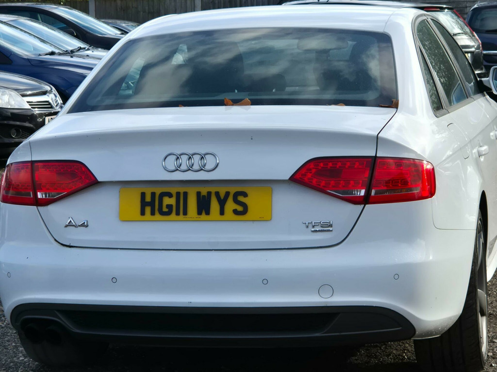 This 2011 Audi A4 2.0 TFSI Black Edition quattro Euro 5 (s/s) 4dr Saloon is currently available for £5,599 in Essex with Petrol engine and Manual gearbox. For more information or to arrange a viewing, click here to send us an email using form below.