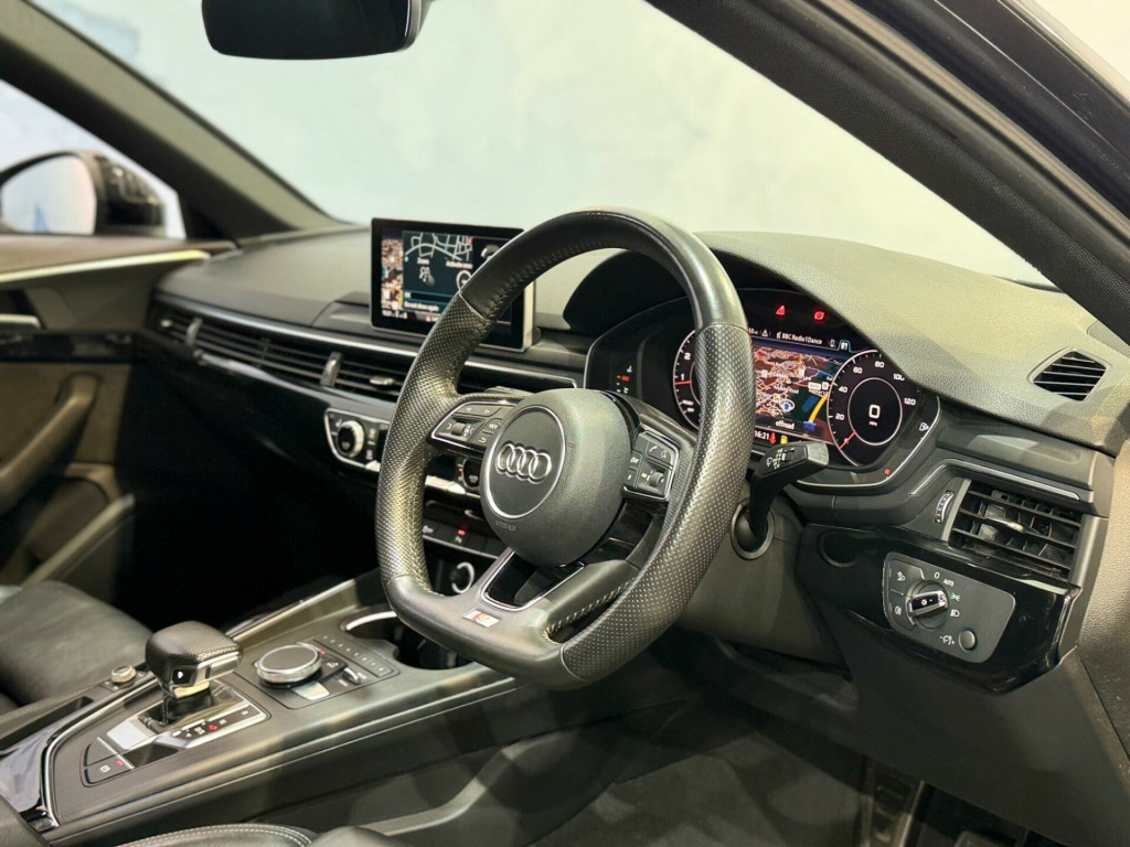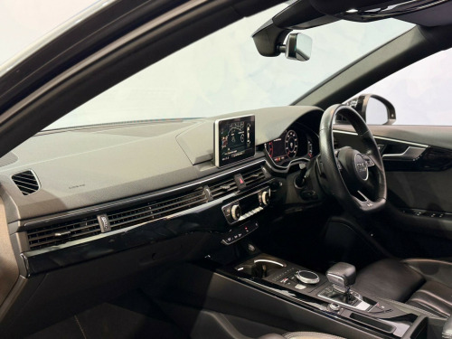 This 2017 Audi A4 TFSI Black Edition offers an exceptional blend of style and technology, boasting a Euro 6 compliant 2.0 litre petrol engine. Finished in the striking Black Edition trim, this model comes equipped with the desirable Technology Pack, which includes Bluetooth connectivity and convenient wireless phone charging. The advanced Matrix LED headlights, complemented by LED rear lights and dynamic front and rear indicators, ensure excellent visibility. Inside, you'll find luxurious Fine Nappa leather sports seats embossed with the S logo, all in a sophisticated black finish. For added peace of mind, rear side airbags are also included.This Audi A4 stands out with its impressive performance, achieving 0-60mph in just 7.0 seconds, demonstrating its dynamic capability. Its efficiency is equally noteworthy, with a highlight fuel economy of 50 mpg, making it an economical choice for your journeys. Furthermore, this vehicle benefits from a low insurance group and low CO2 emissions, indicating it is more cost effective to own and run compared to many similar vehicles. The Audi Entertainment Mobile feature, also with Bluetooth, ensures connectivity and entertainment on the go. di entertainment mobile, technology pack, high-beam assist, matrix led headlights with led rear lights and dynamic front and rear indicators, rear side airbags, door mirrors - electrically folding, door mirrors - folding with auto-dimming and memory function, fine nappa leather - sports seats - s embossed - black, 19in alloy wheels - 5-arm rotor matt titanium look - diamond cut, 4-way electric lumbar support, 6-airbag system, anti theft locking wheel bolts, anti-theft alarm, audi connect - 3 month trial, audi connect safety and service - e-call, audi drive select, audi smartphone interface, audi sound system, auto-dimming rear-view mirror, black styling package, bluetooth interface, cd drive, chrome-plated trims for exhaust system, cloth headlining in black, cruise control system with freewheeling capability and speed limiter, dab digital radio, deluxe 3-zone electronic climate control, door handles - body coloured, door mirrors - electrically adjustable and heated with built-in led indicators, driver information system - 7in colour display, esc - electronic stabilisation control inc abs - asr and edl, electric boot lid release, electric windows - front and rear, electromechanical power steering, first aid kit and warning triangle, flat bottomed 3-spoke leather high multi-function steering wheel, front centre armrest, gear lever knob in black perforated leather, heated front seats, high gloss package, isofix child seat mounting and top tether, illuminated door sill trims with s logo, inlays - piano finish - black, keyless go, led headlights with led rear lights and dynamic rear indicators, led interior light package, light and rain sensor, mmi navigation - sd card based, manual height adjustment for front seats, multi collision brake assist, parking system plus, pedals and footrest - stainless steel, pop-up bonnet for pedestrian protection, pre-sense city, privacy glass and front acoustic glazing, rear diffuser in twilight grey matt, rear grille - black grained, remote central locking, s line badges on front wings, s line front and rear bumpers and side skirts, seat belt monitoring, space saver spare wheel, split-folding rear seat bench in 3 parts - 40-20-40 with rear centre armrest, sport suspension, sun visors - with vanity mirror, tool kit and car jack, towbar preparation, two usb charging ports, tyre pressure warning light, voice control, windscreen with acoustic glazing